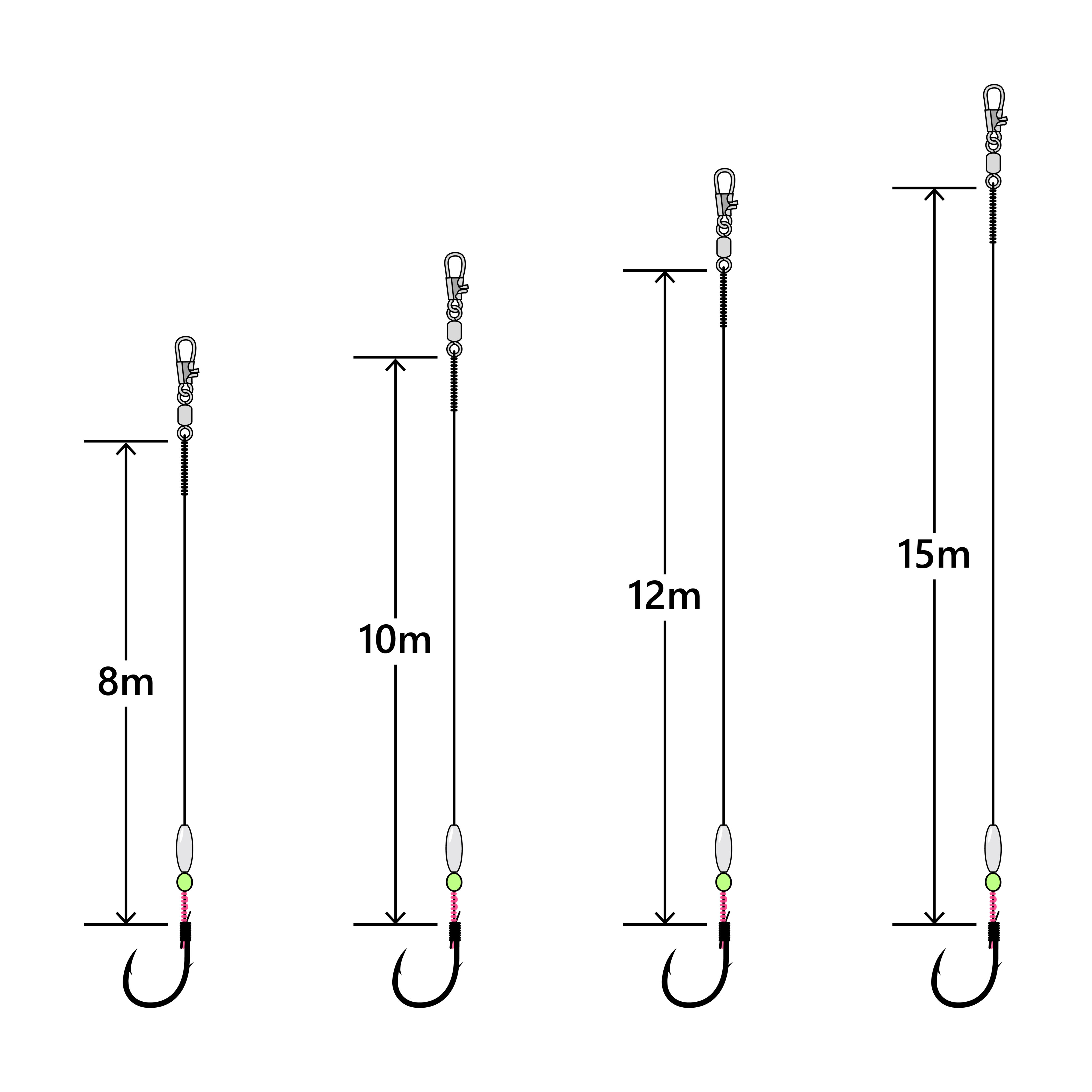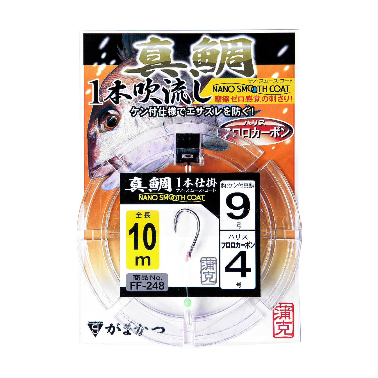 摩擦抵抗が少なく、驚異の貫通力を誇る“ナノスムースコート”仕様の「ケン付真鯛」を採用。編み込み補強により、鈎のタタキでのハリス切れを防ぎます。