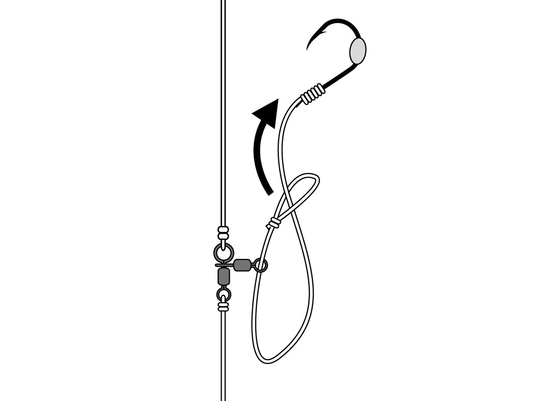 ハリスの輪をサルカンにくぐらせ、その輪に鈎を通して、引っ張るだけ!