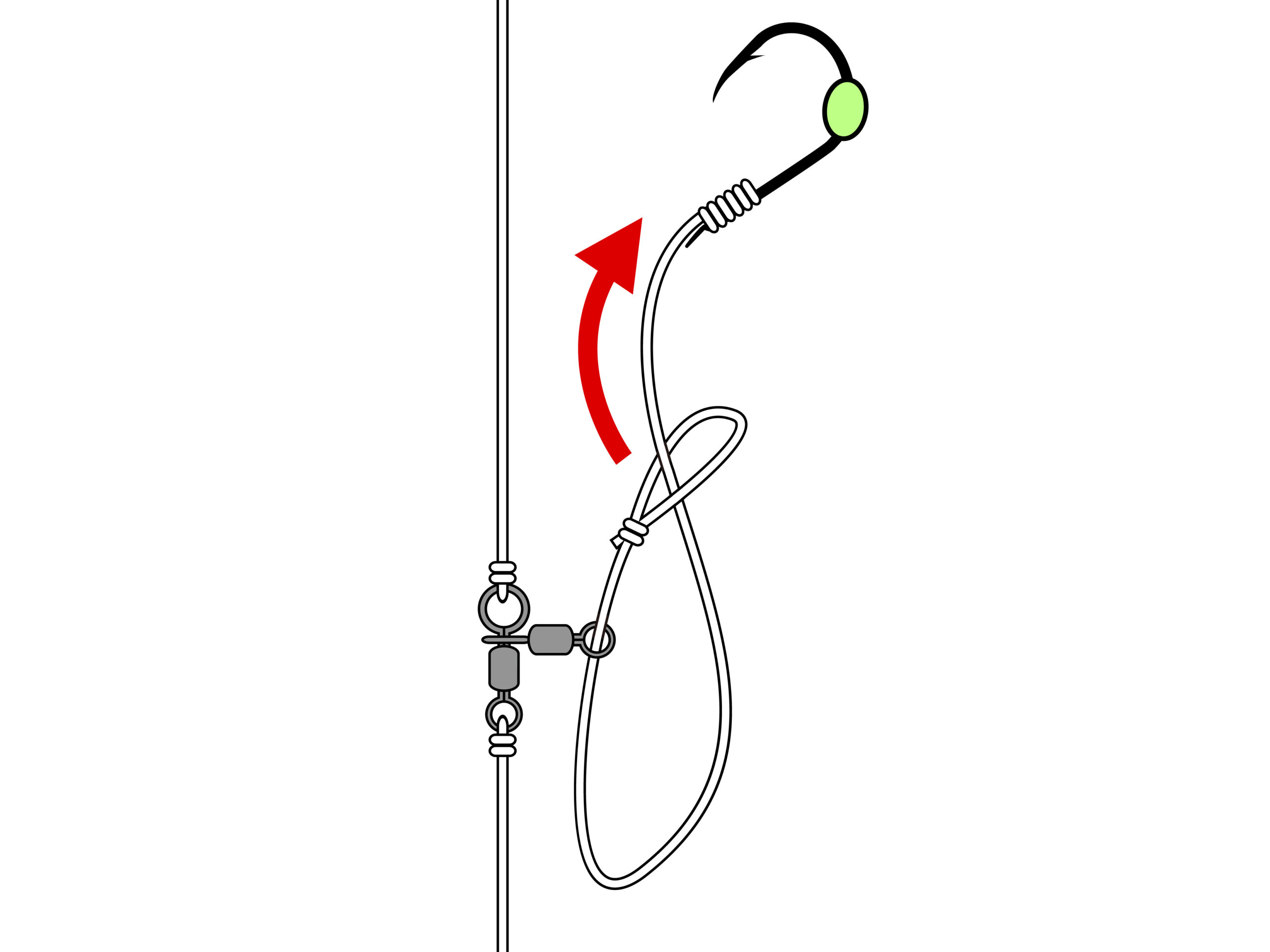 ハリスの輪をサルカンにくぐらせ、その輪に鈎を通して締め付けるだけで簡単にセットできます。糸付鈎は2本付属しているのでハリスが切れてしまってもすぐに交換できます。