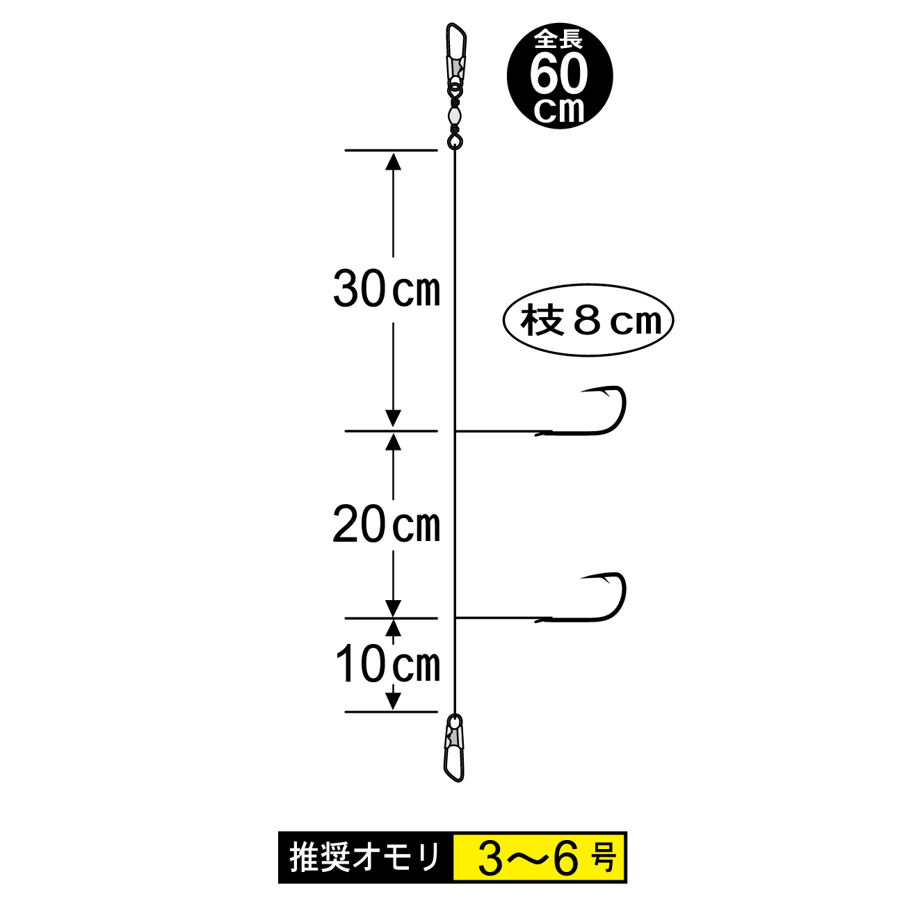 カサゴ対応に、下鈎はワンランク太目のハリスを使用。