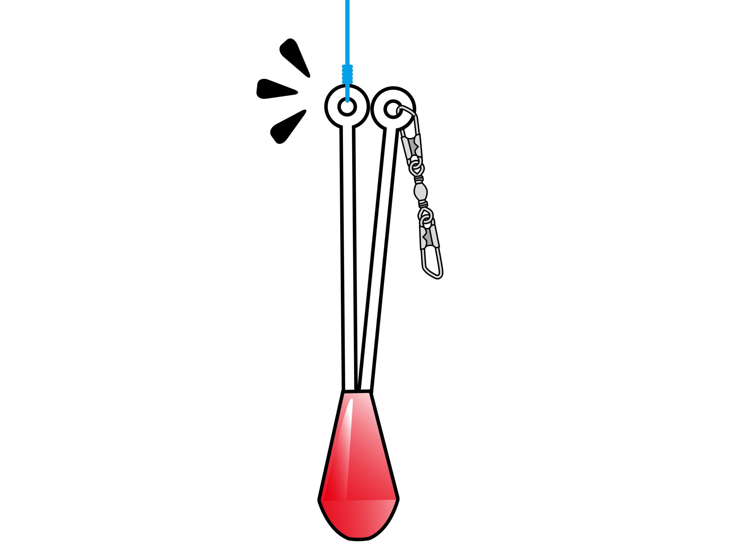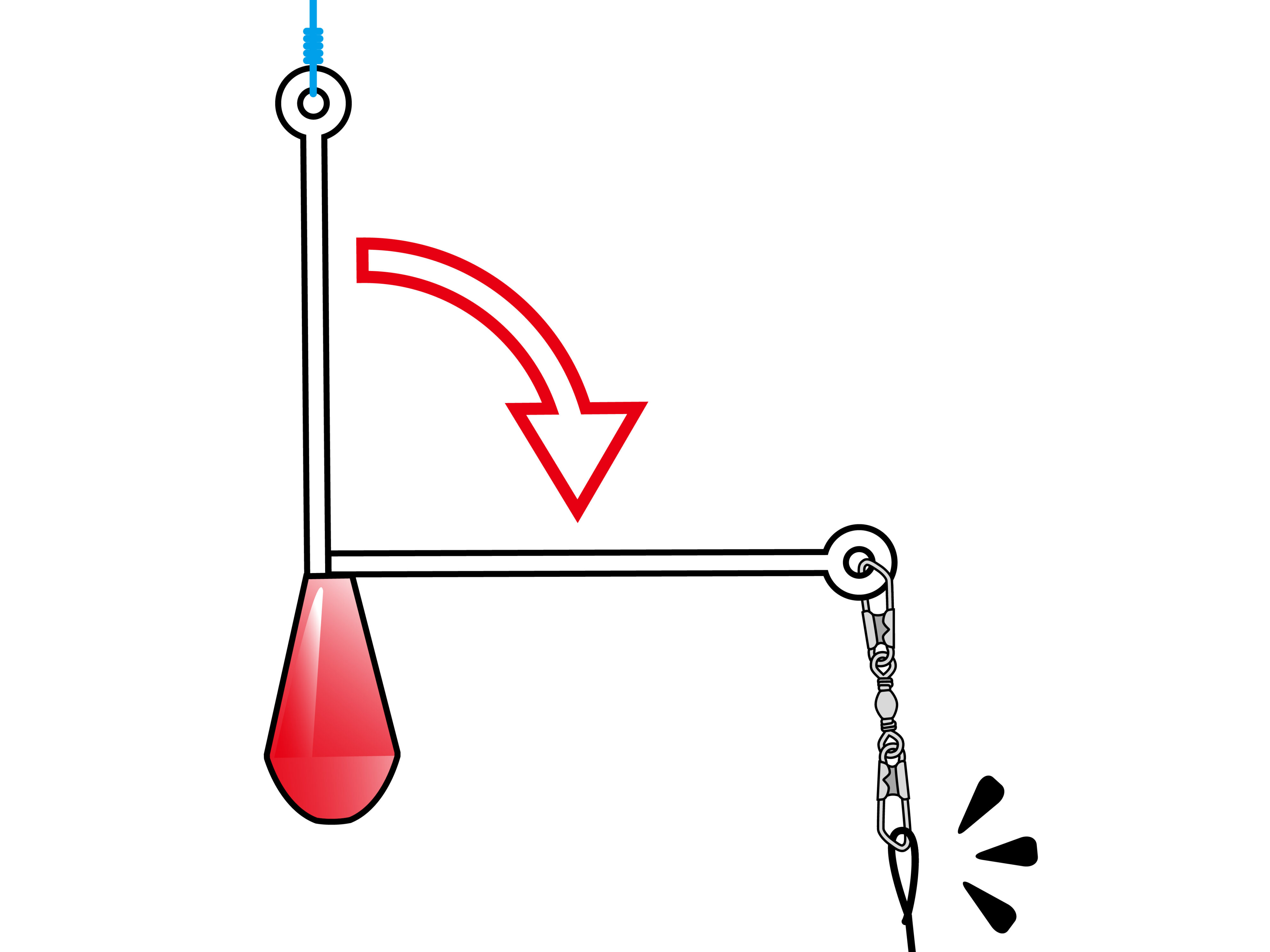 アームを90度折り曲げて糸付鈎の輪をスナップにセットします。