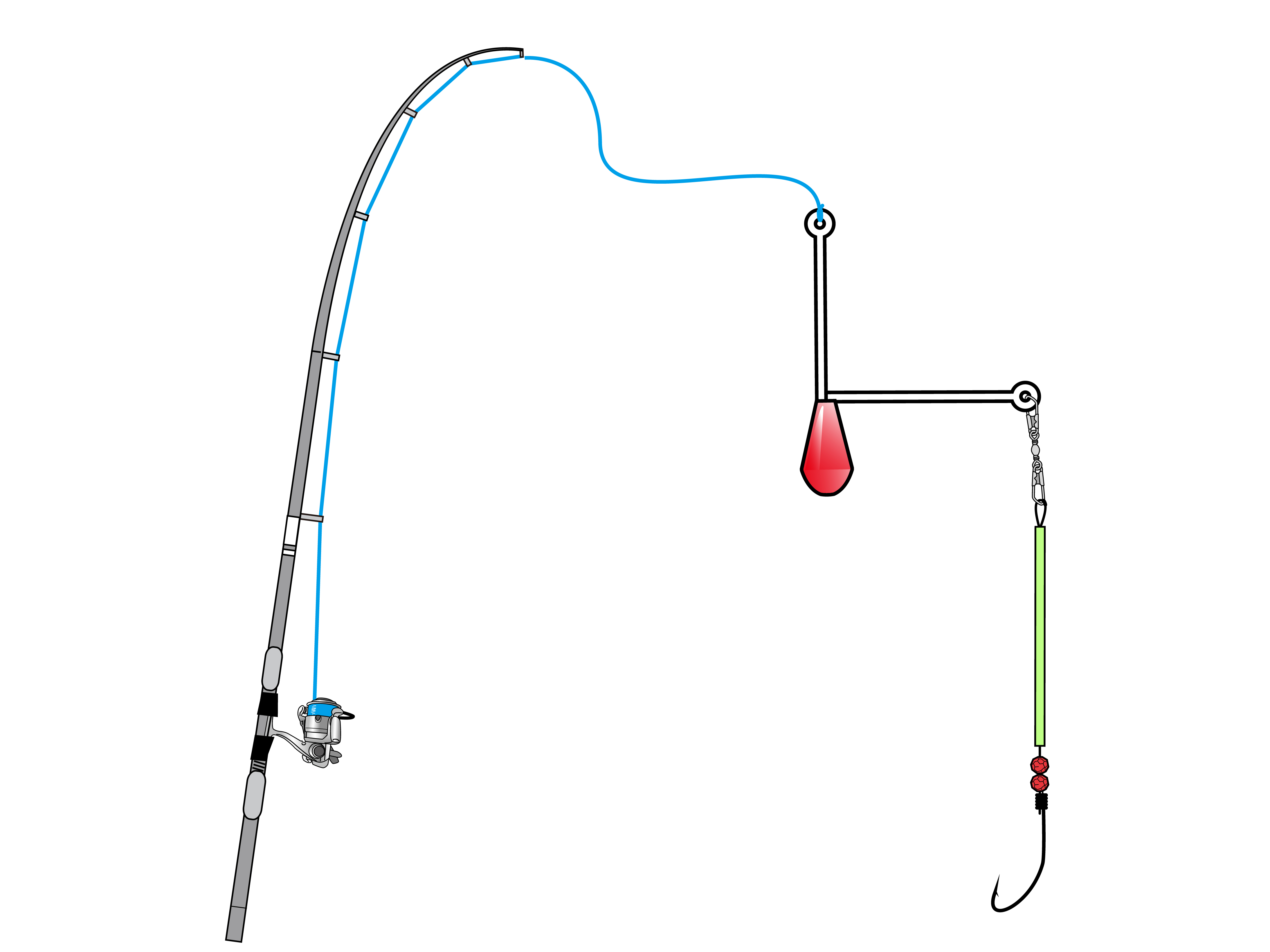 ルアーロッドやコンパクトロッドを使います。スナップは回転でからみを防ぎます。