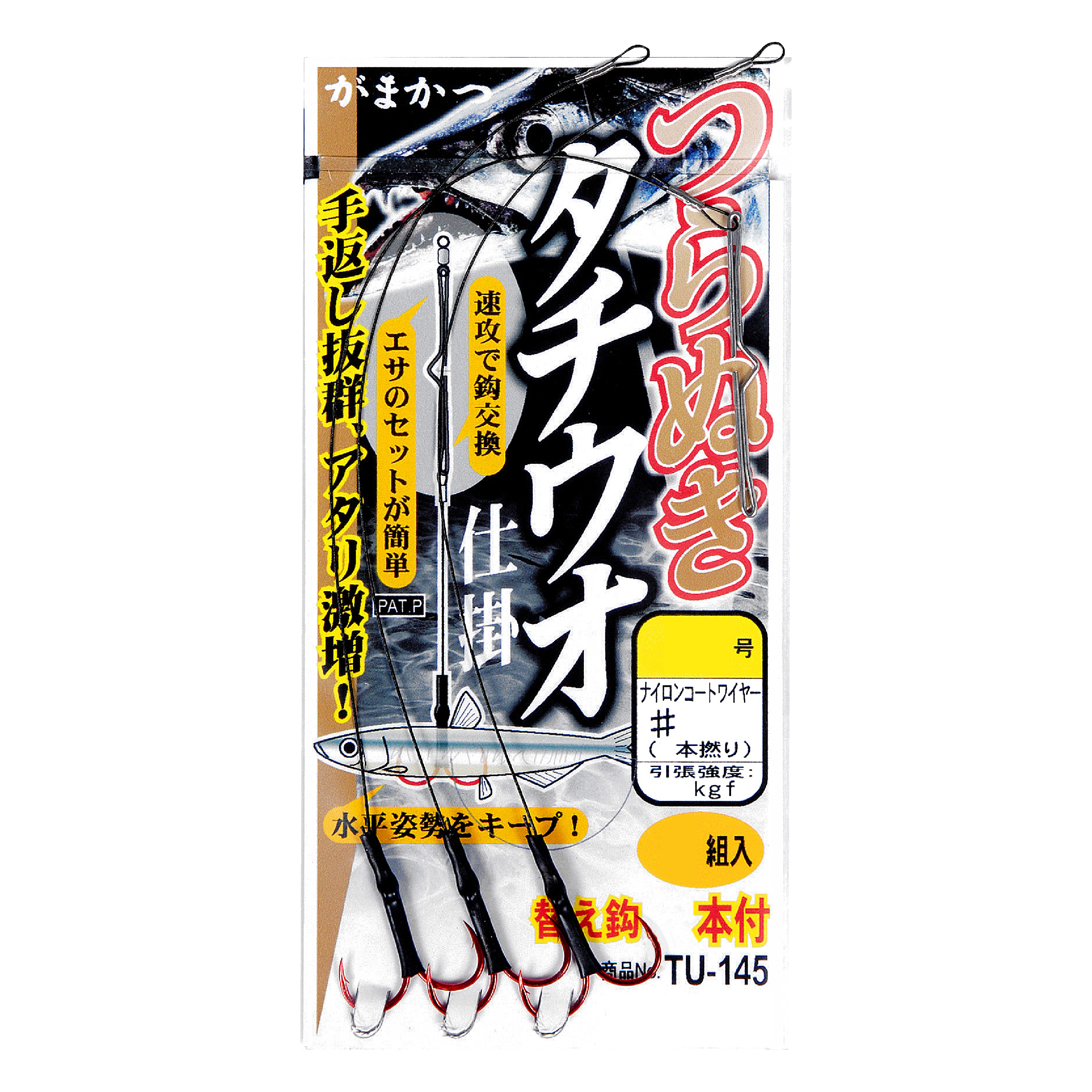 餌が自然な状態で漂うため、食い渋り時に効果を発揮!透明なフロロカーボンハリスで目立ちにくく、警戒心を与えず喰い込み抜群!オモリを付けずに仕掛を送り込むため、餌が自然に漂いタチウオを誘惑!