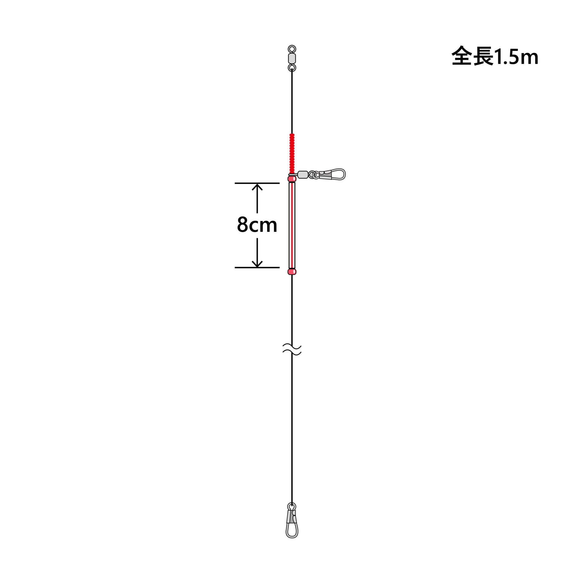 状況に応じてエダスの長さを自在に変更可能なイカメタルリーダー。潮の速さや活性に応じてエダス長を調整することで、あらゆる状況に対応可能な仕掛です。その日の最も適したパターンに仕掛をその場で調整できます。