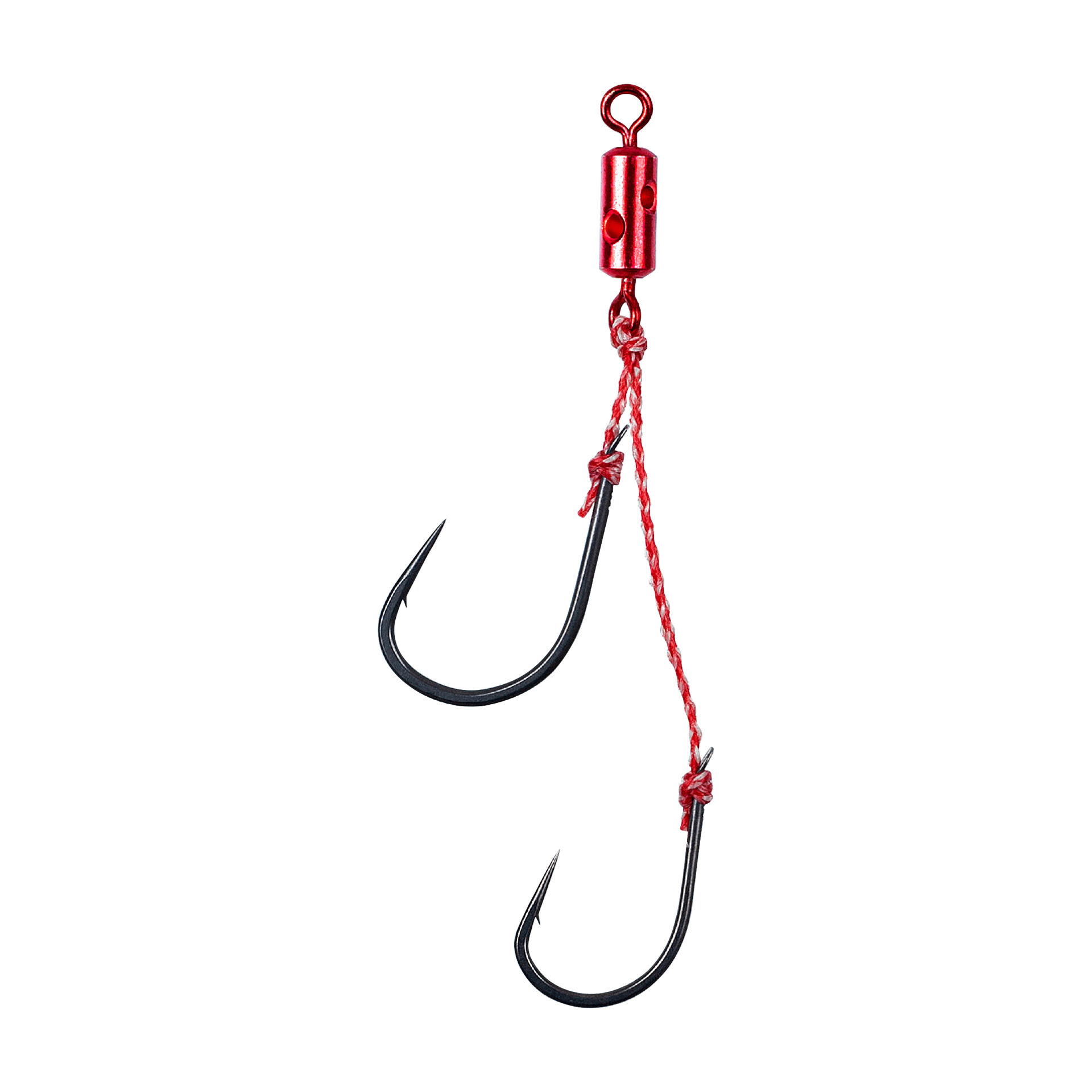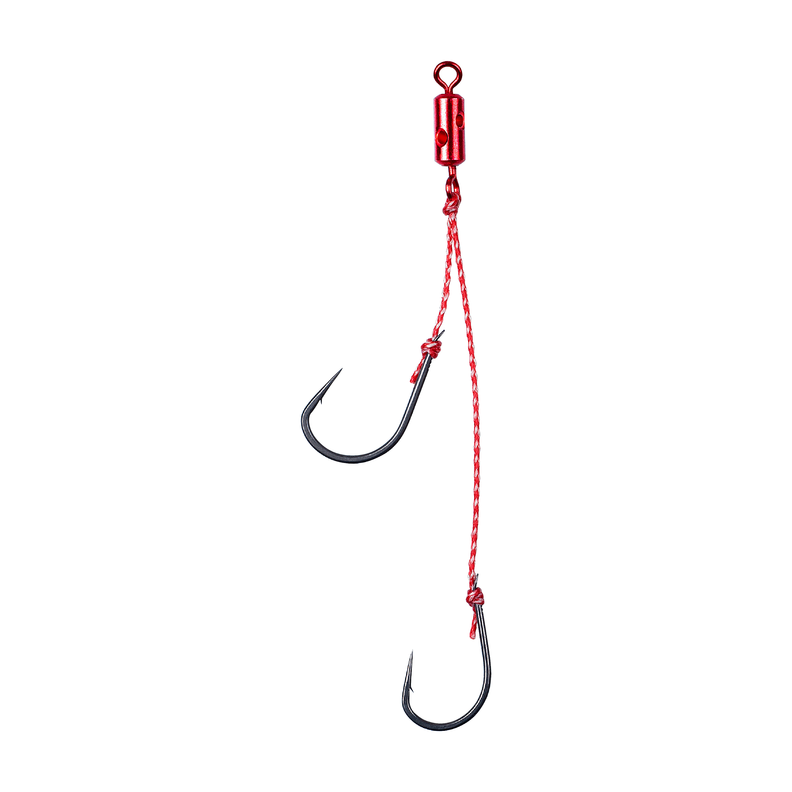 唇に掛けることに特化!両方の鈎を唇に掛けるため、わずかな段差を設けたフックセッティング。バイト直後にリトリーブを緩めたり、ロッドを送り込んで鯛を反転させ、フックポイントを唇に絡ませることが釣果アップの秘訣です。