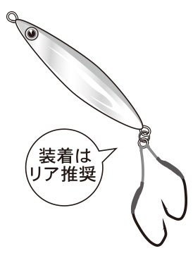 バイトの大半がフォールに集中するシーバスジギングにおいて、如何にしてフォールバイトを捉えるかをテーマに開発。超先鋭鈎先の新形状フックを採用することで、ジャレつくようなフォールバイトをオートマチックにフッキングが可能。掛けてからは深いベンドヒール部がしっかりとホールドしバラシを防止。アシストラインにはこの釣りの創成期から確立された実績の寸法を採用し、理想のフッキングを実現。パーツ細部に至るまでこだわった専用設計で釣果アップをサポートします。