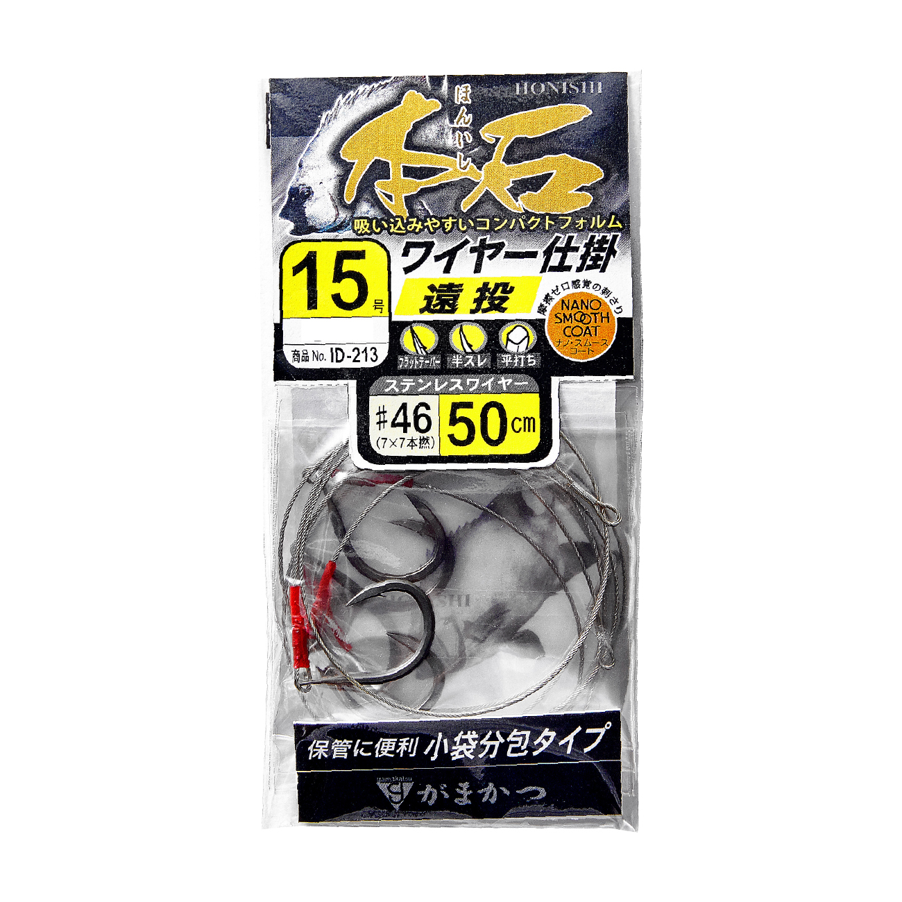 石鯛に違和感なく吸い込ませる「本石」に、しなやかな7×7ステンレスワイヤーをハリスとした石鯛仕掛。さらに細い#46のワイヤーを採用。喰い込みが違う!保管に便利な小袋分包タイプ。
