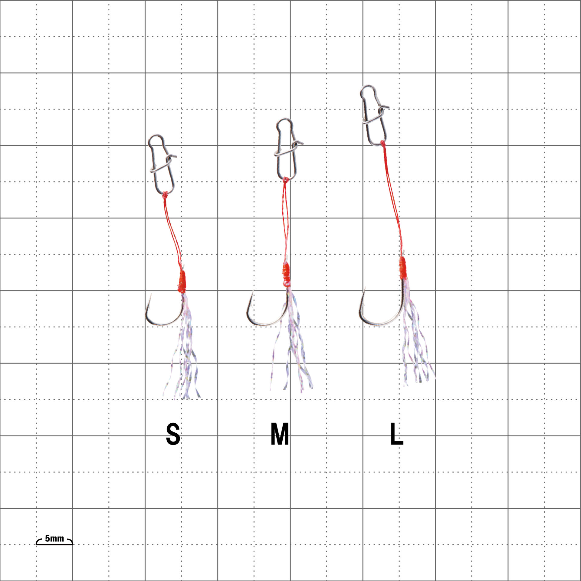マイクロジグ専用のアシストフック。付属のスナップにジグを付けるだけで簡単にセット完了。小型魚の弱い吸い込みにも対応する極細PE仕様です。