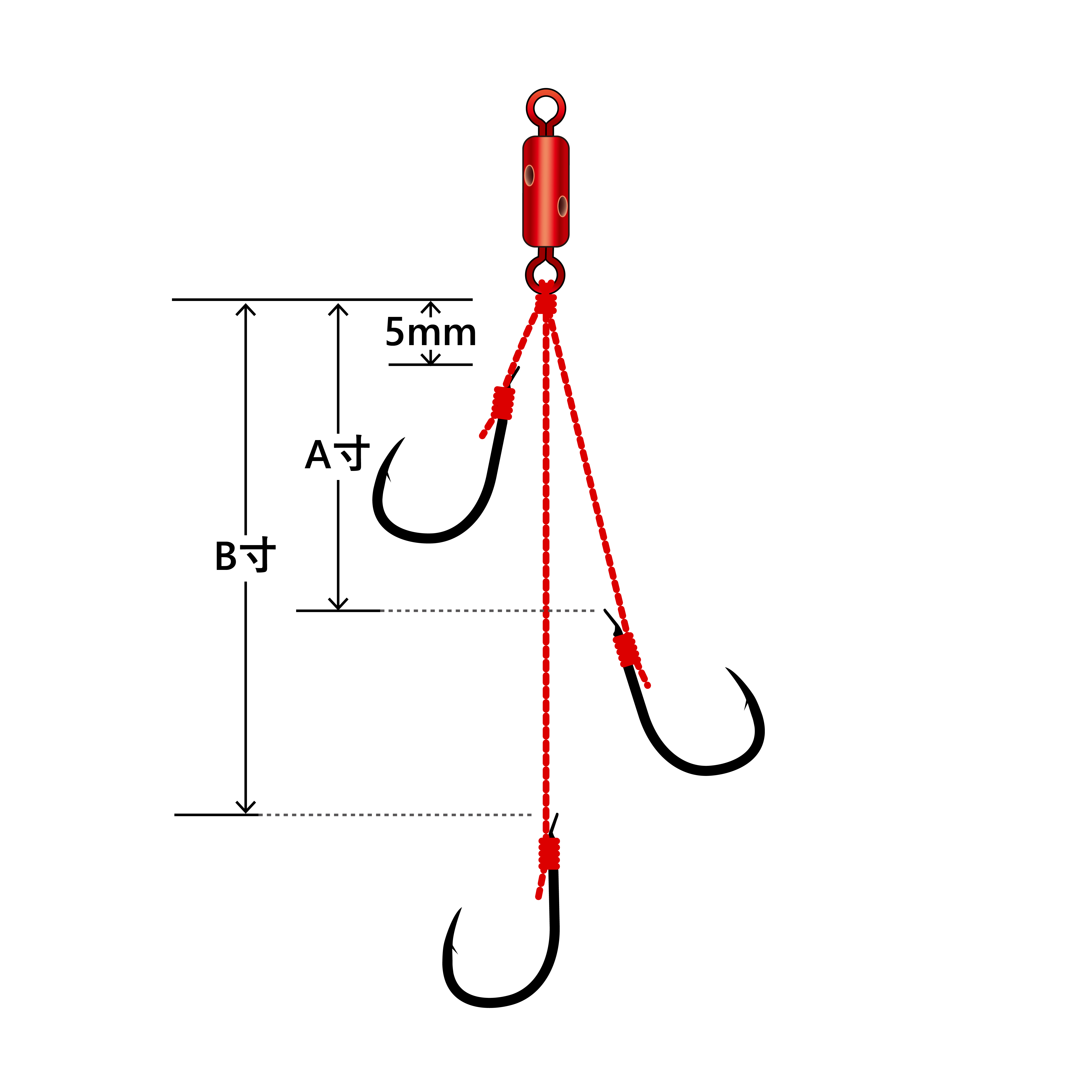 BLはバーブレスを意味し、カーブポイント+バーブレスで唇掛けに特化したサーベルポイント バーブレス タイプFを使用しています。バイト後に真鯛を反転させ、唇に多点掛けを得意とするセッティングです。