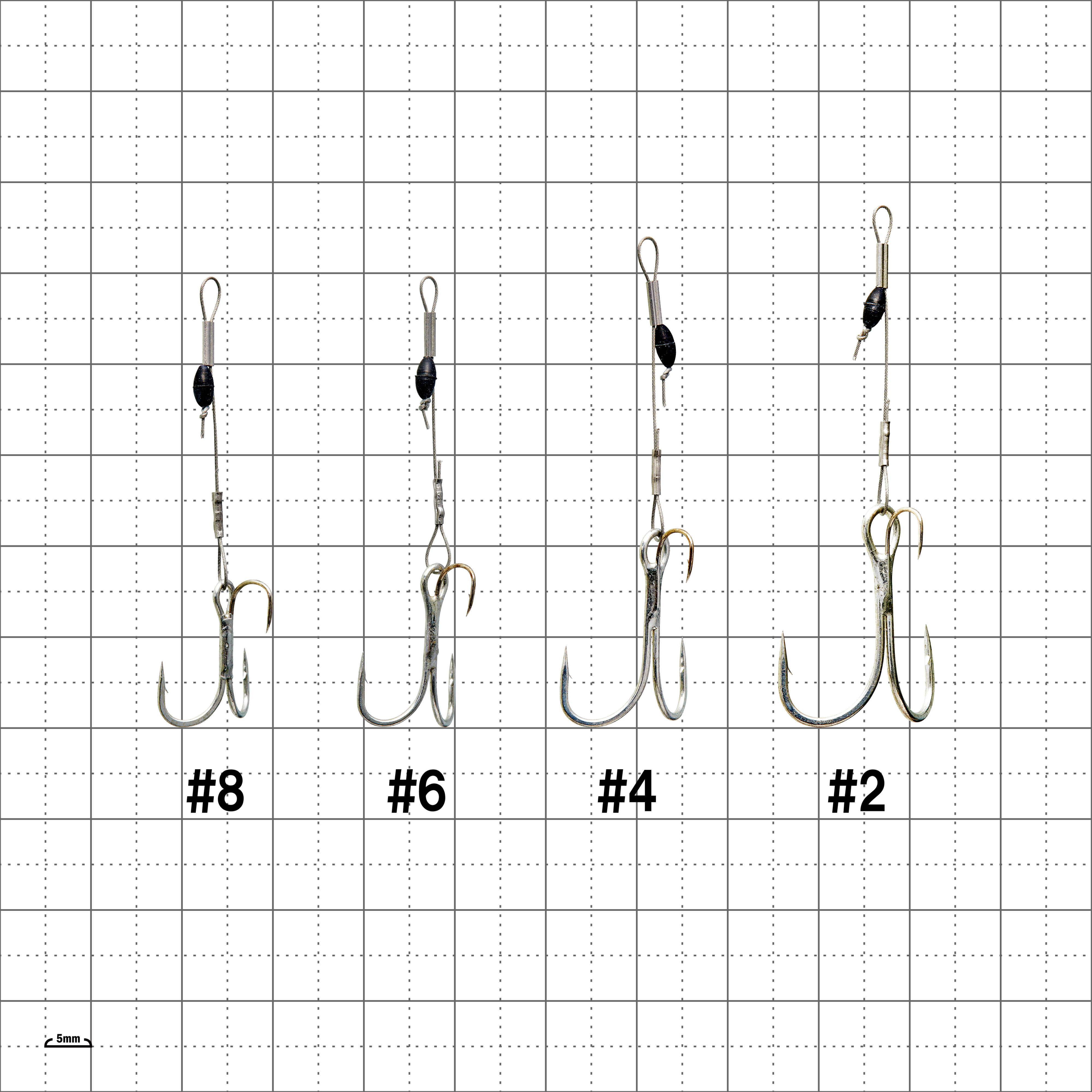 ゴムのストッパーがついているので、ワイヤーの長さも調整でき、あらゆるサイズのルアーに使えます。また、何度もアシストフックをセットした結果、ボディの穴が大きくなってもワイヤーの長さを調整すればOK!