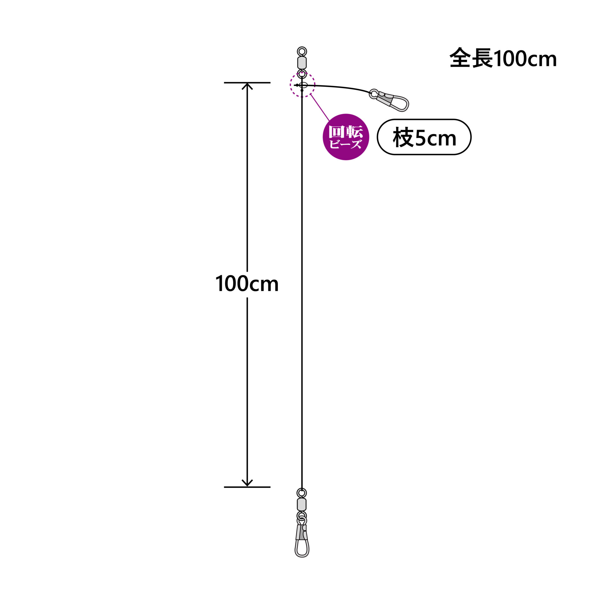 (1)のスナップにドロッパーとしてお手持ちのウキスッテやエギを、(2)のトリプルスイベル付スナップにオモリ、(3)のスナップにお手持ちのエギをセットします。