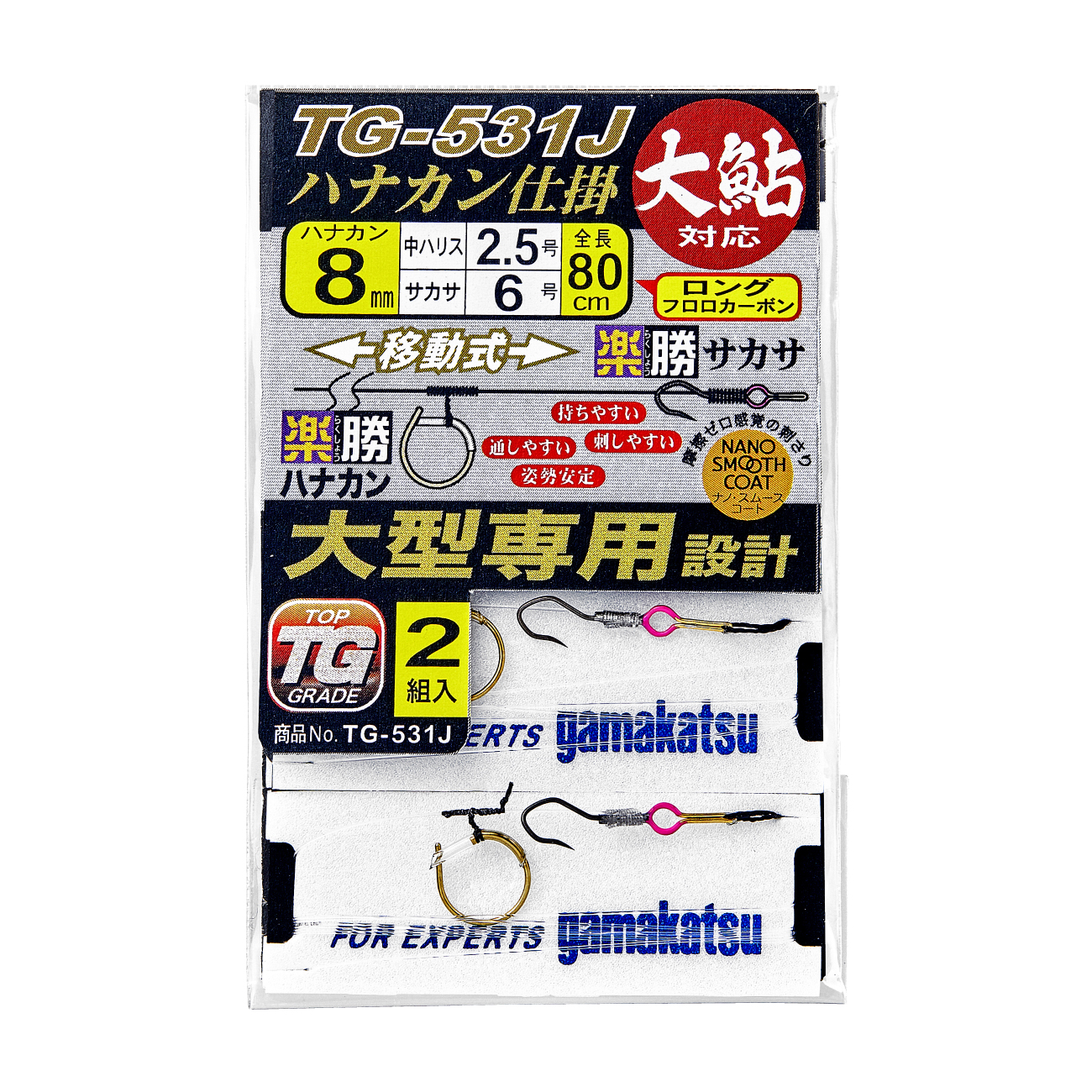 ハナカンはオトリ鮎の姿勢が安定する「楽勝ハナカン」、サカサは使いやすさを追求、大鮎狙いに対応したハリス止めを採用した「T1楽勝サカサ 6号」を使用。中ハリスはロング仕様の80cmで直結仕掛にも対応します。