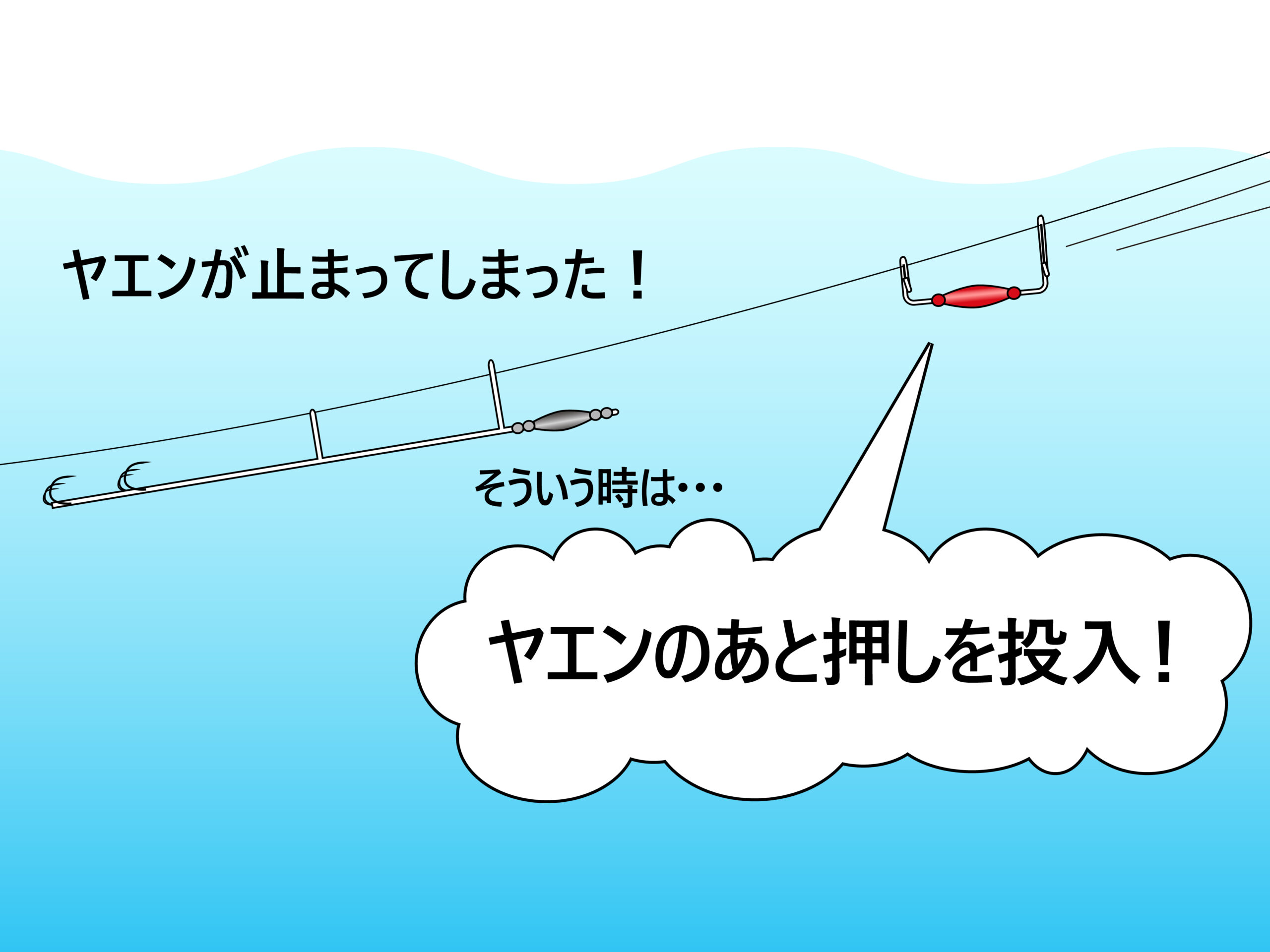 ヤエンを投入したはいいが、何かの原因でイカまでヤエンが届かない。そんな場合にこの「ヤエンのあと押し」が大活躍!