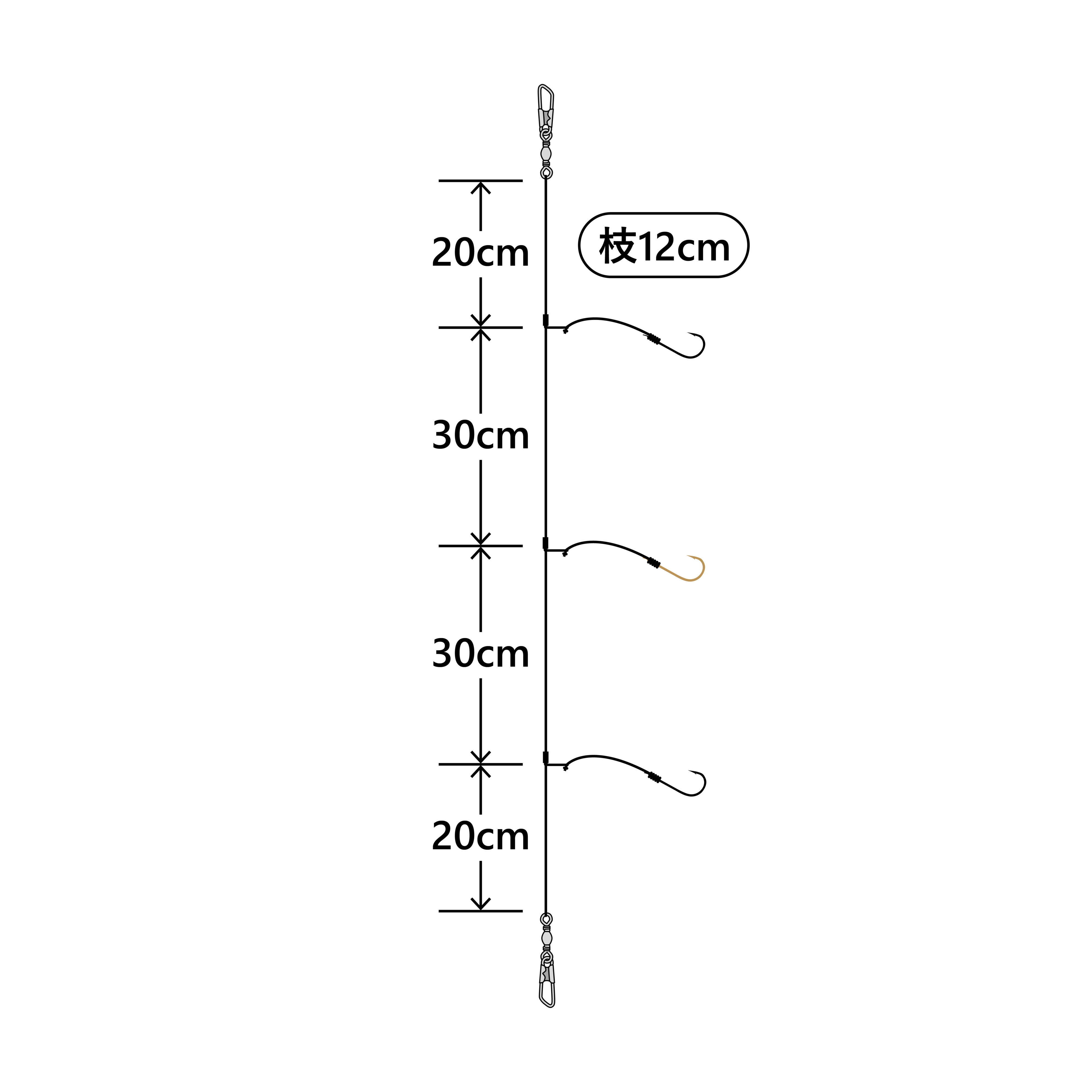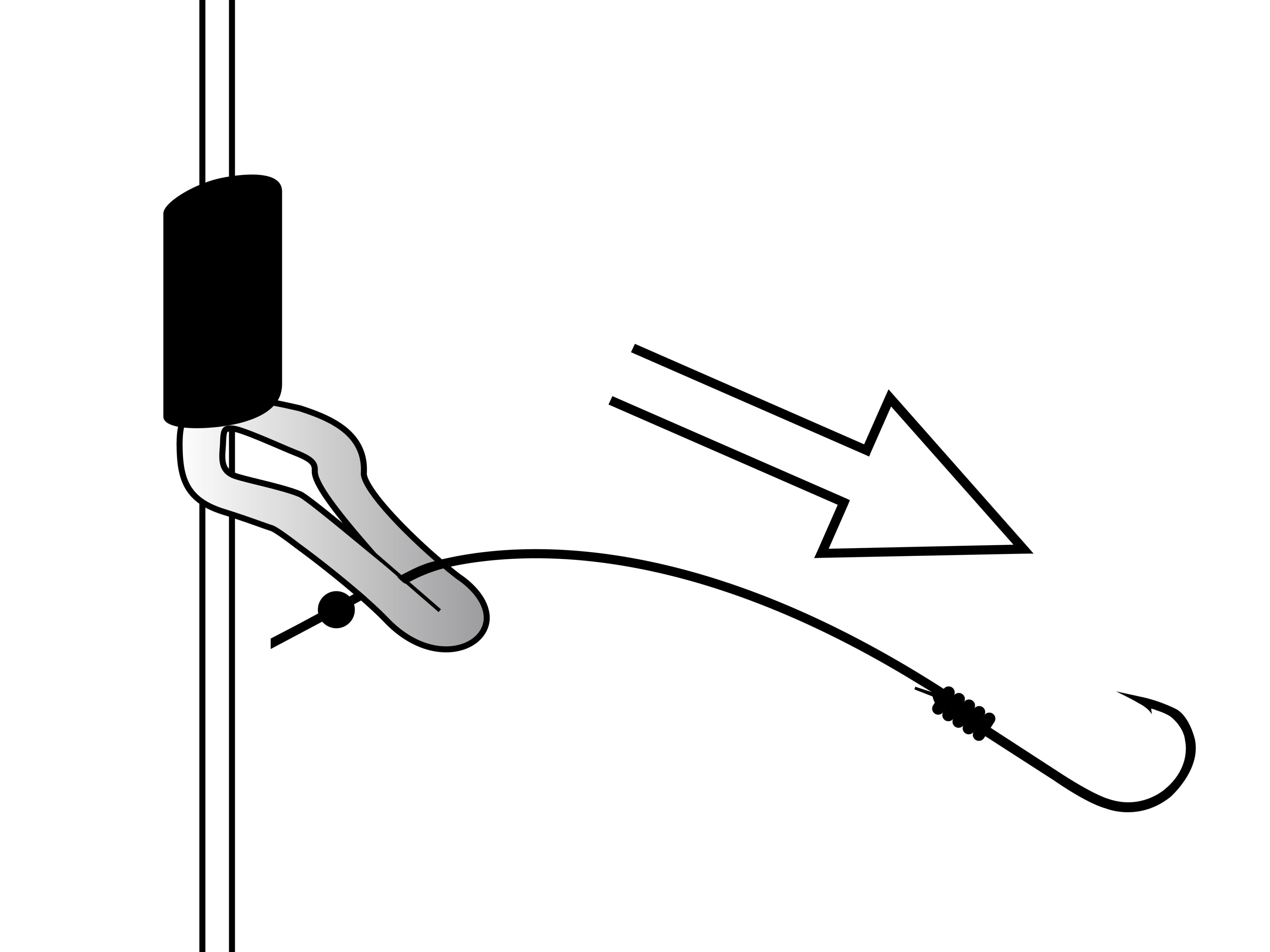 ハリス止先端にハリスをはさみ鈎方向へ引っ張って固定します。結びしろを切ってお使いください。