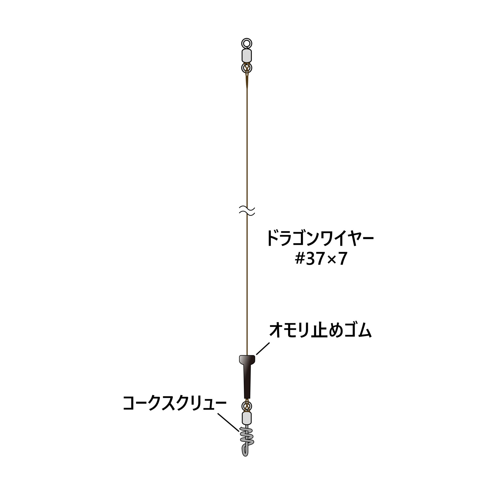 現在発売している「ベニガゼワイヤー仕掛」、「石まつワイヤー仕掛」などと組み合わせれば、あとは道糸につなぐだけでOKです。スイベルへの接続も丁寧なワイヤー巻き仕上げです。また、個別に袋詰めされていますので、使用時、保管時にも非常に便利です。
