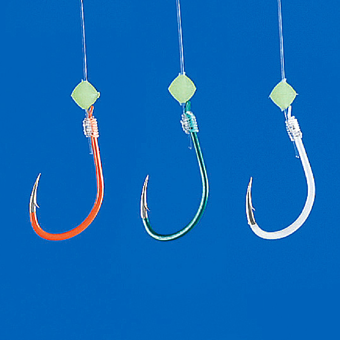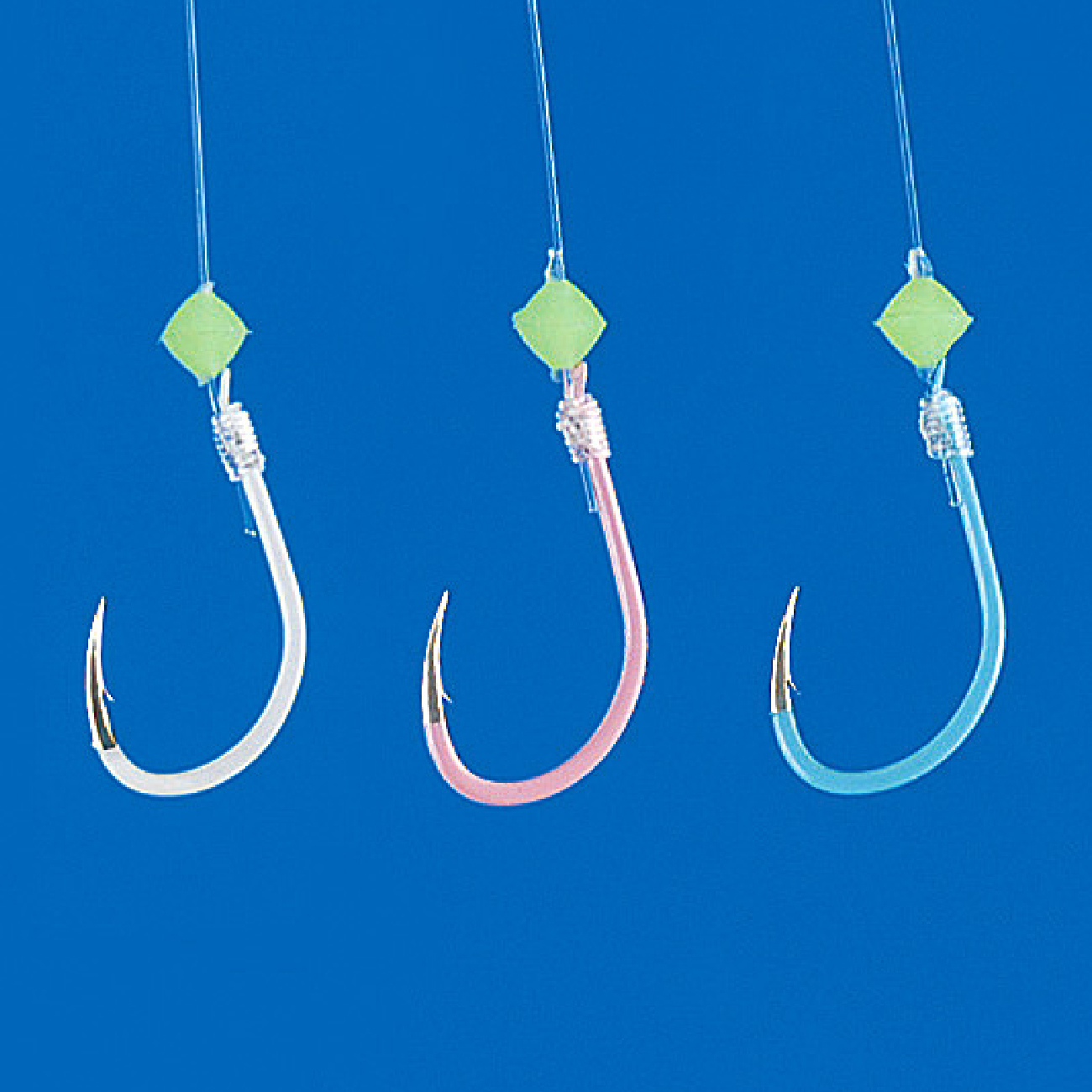 驚異的な貫通性能を誇る“極アジ”をトップレスコートでカラーフックに仕上げました。喰い渋り時には餌付も有効。