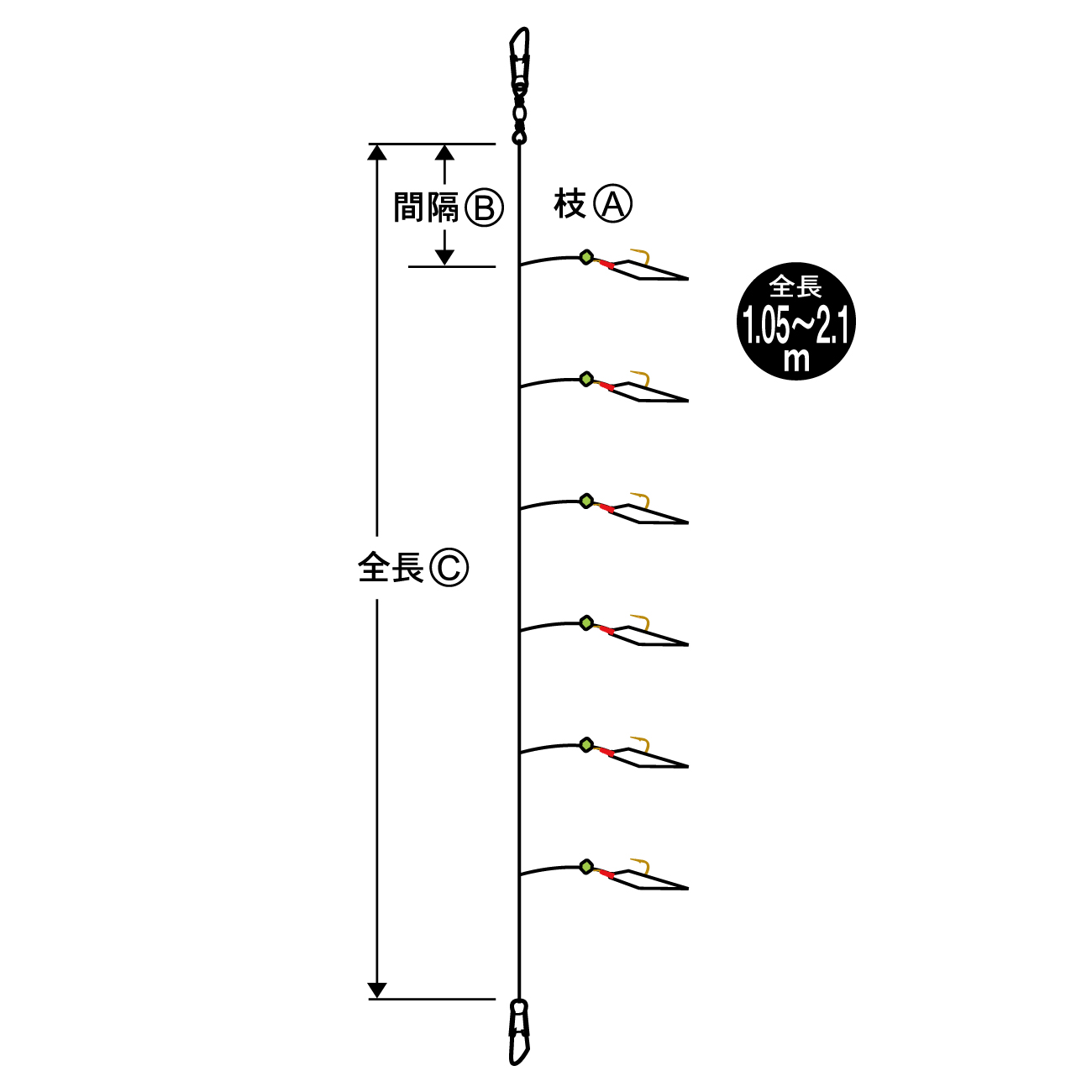 使用鈎:金袖(金)ハゲ皮夜光ビーズ付6本(1組入)