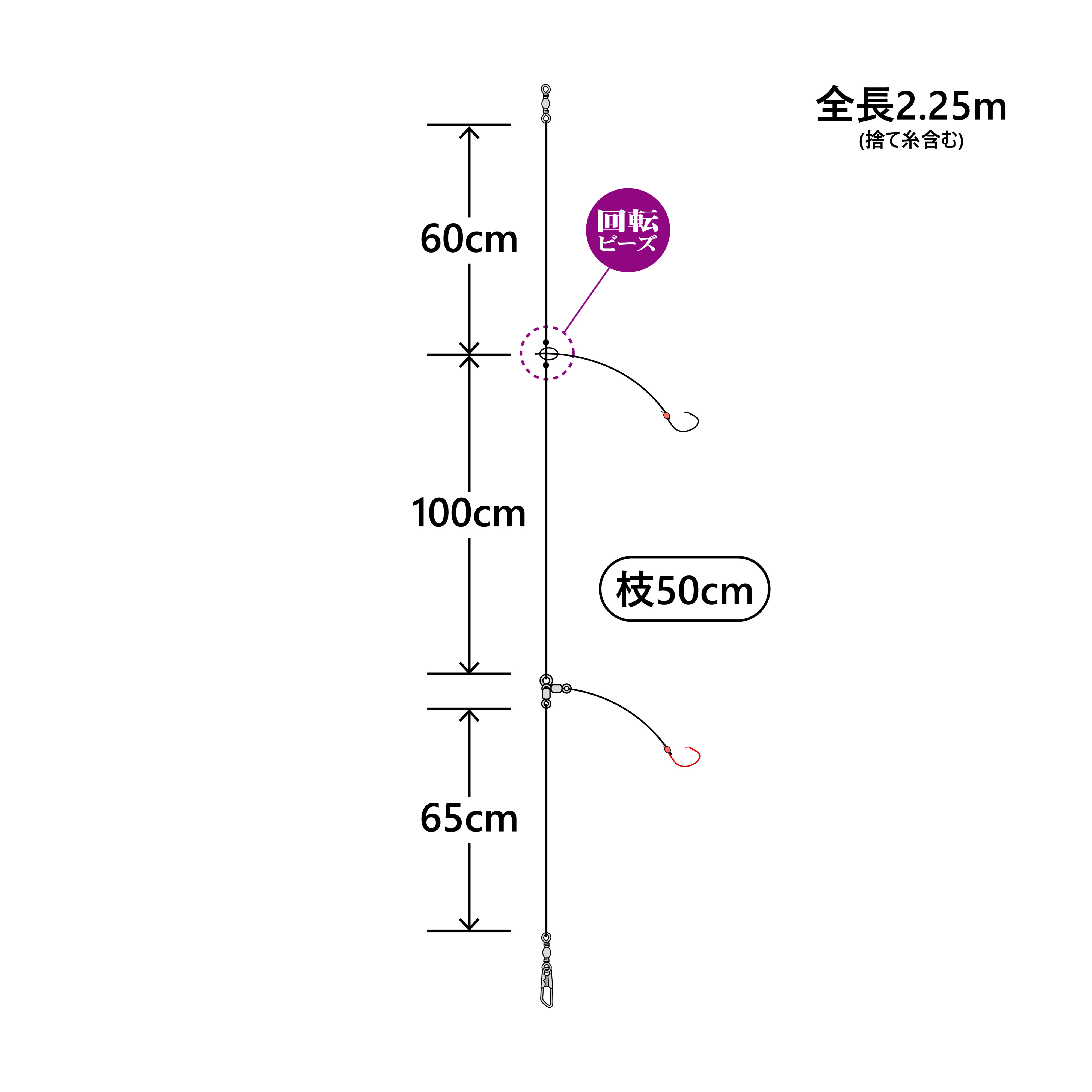 赤 銀 2本仕掛 カラ鈎