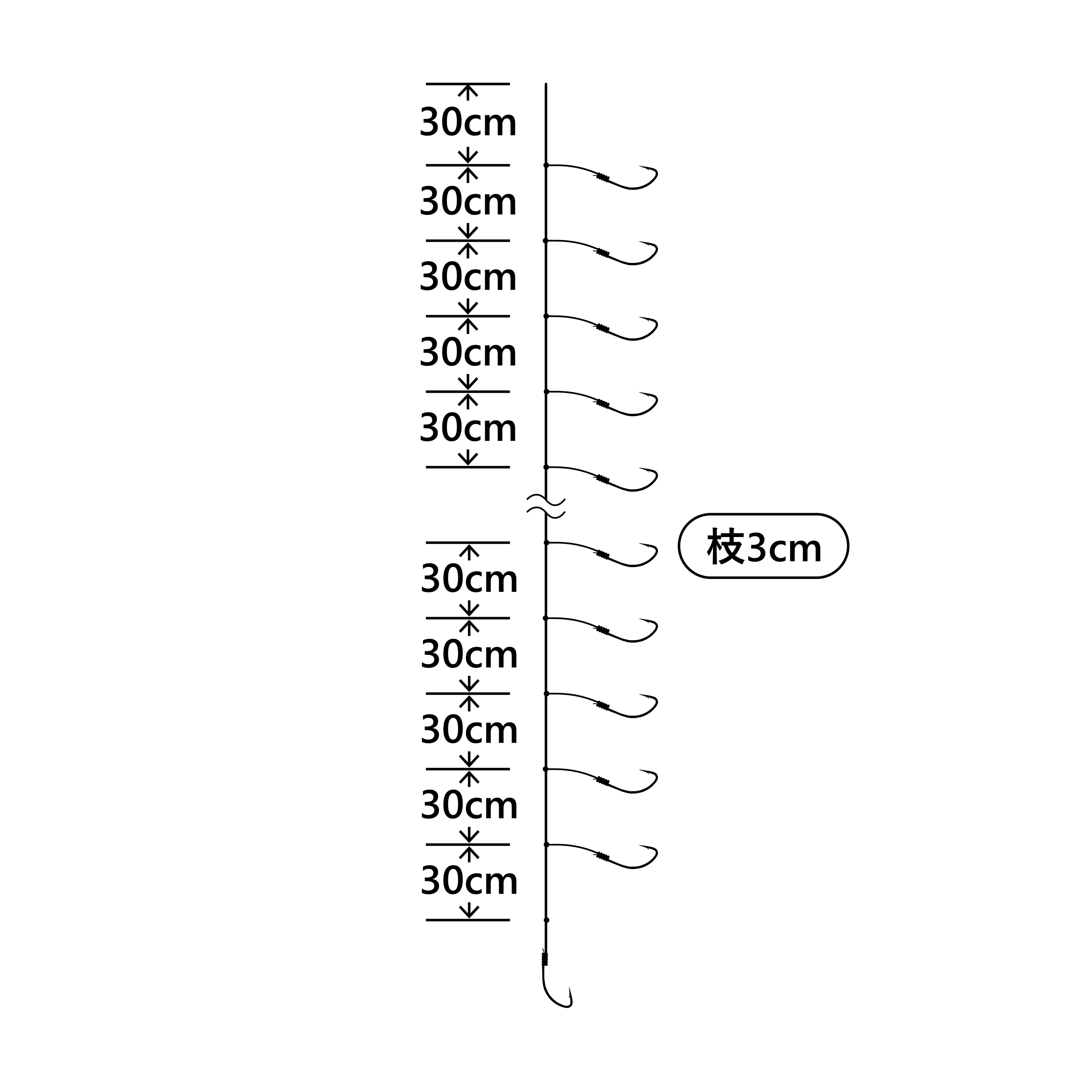 お好みの本数にカットして、別売の天秤オモリ、砂ずり仕掛に接続してご使用ください。