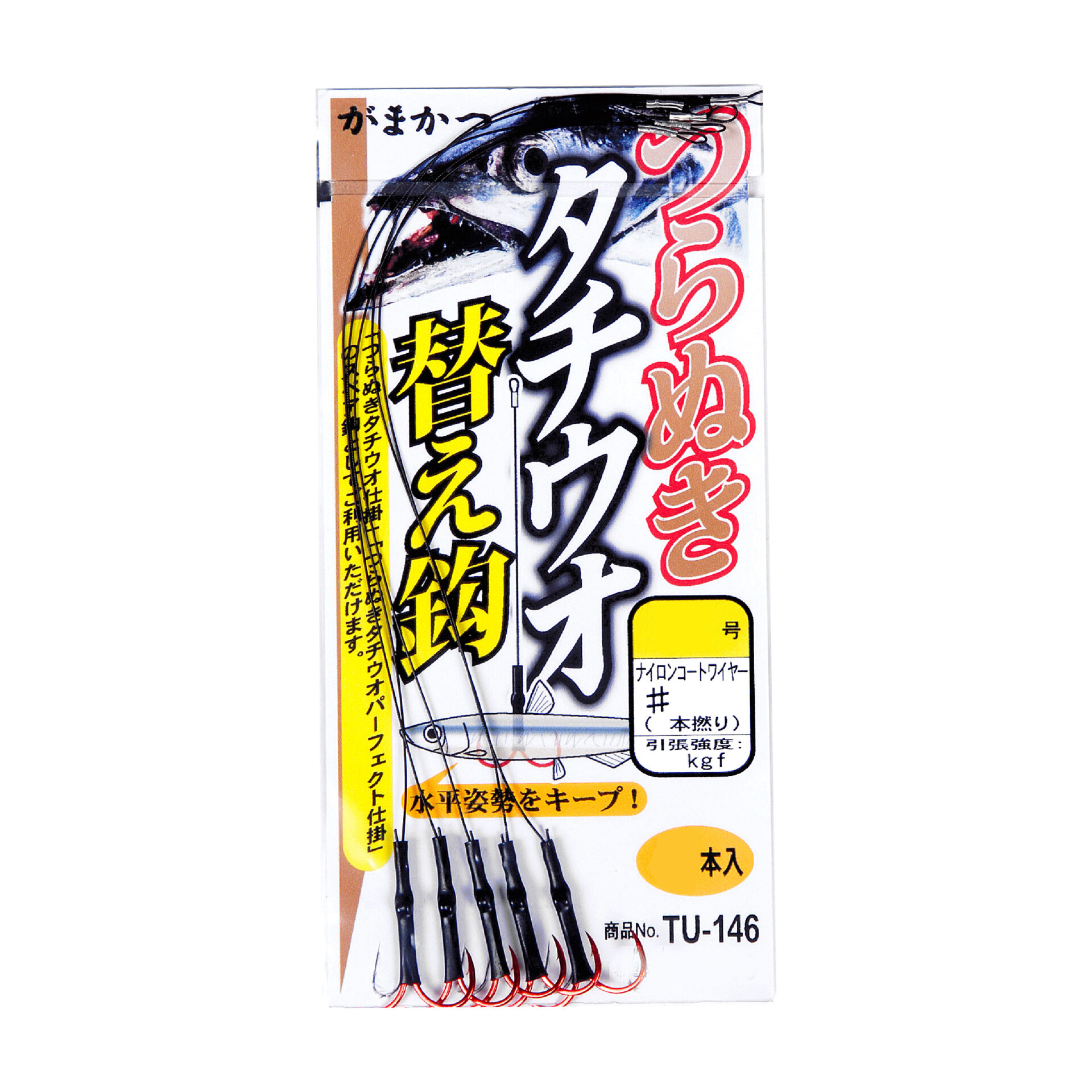 替え鈎は別売の「つらぬきタチウオハリス止」(19145)と組み合わせていただきますと、独自につらぬきタチウオ仕掛が作成できます。また、つらぬきタチウオ仕掛(TU-145)の替え鈎としてご使用いただけます。