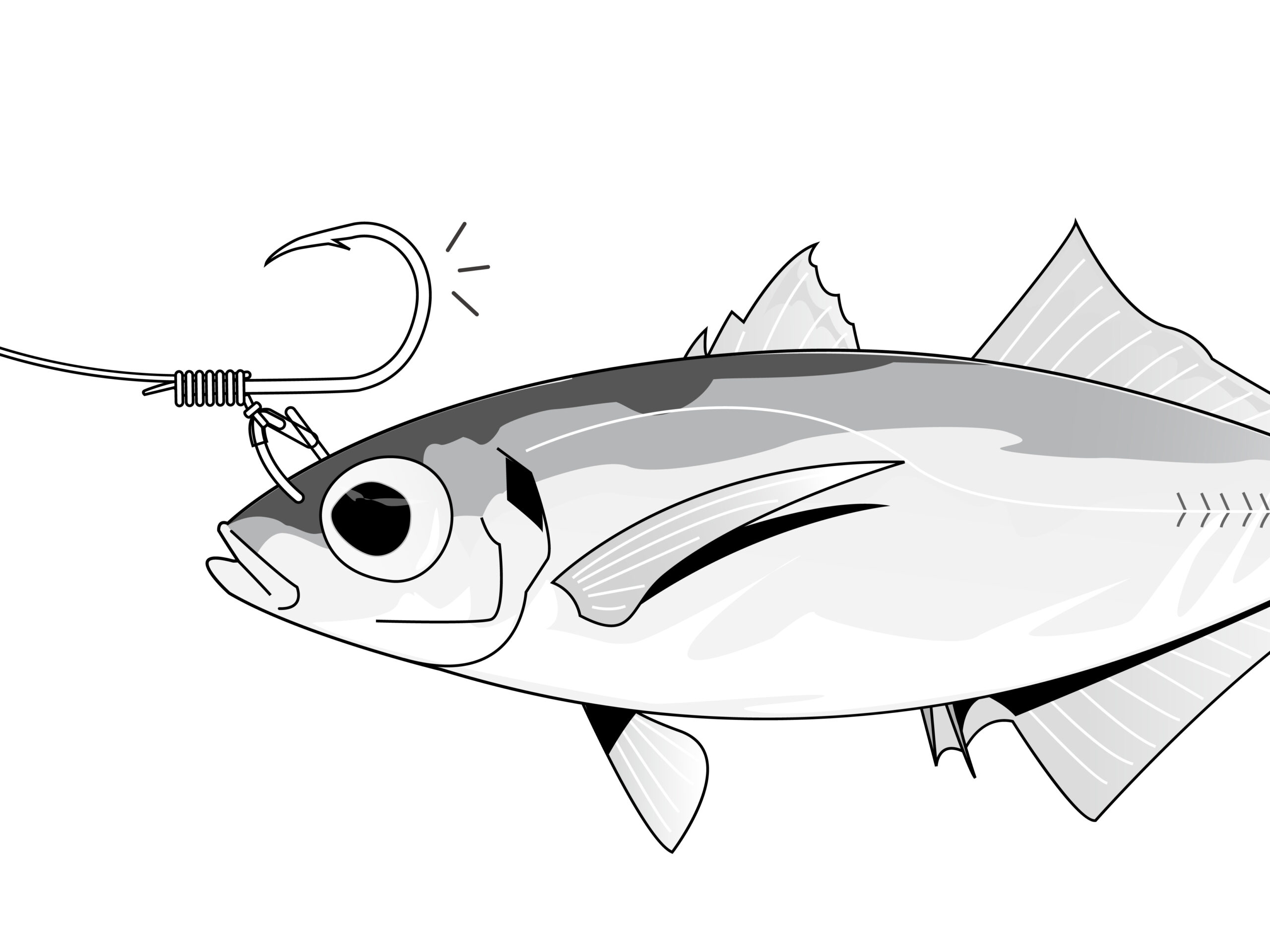 鈎が活き餌の頭上で図の方向・位置になるように調整する。