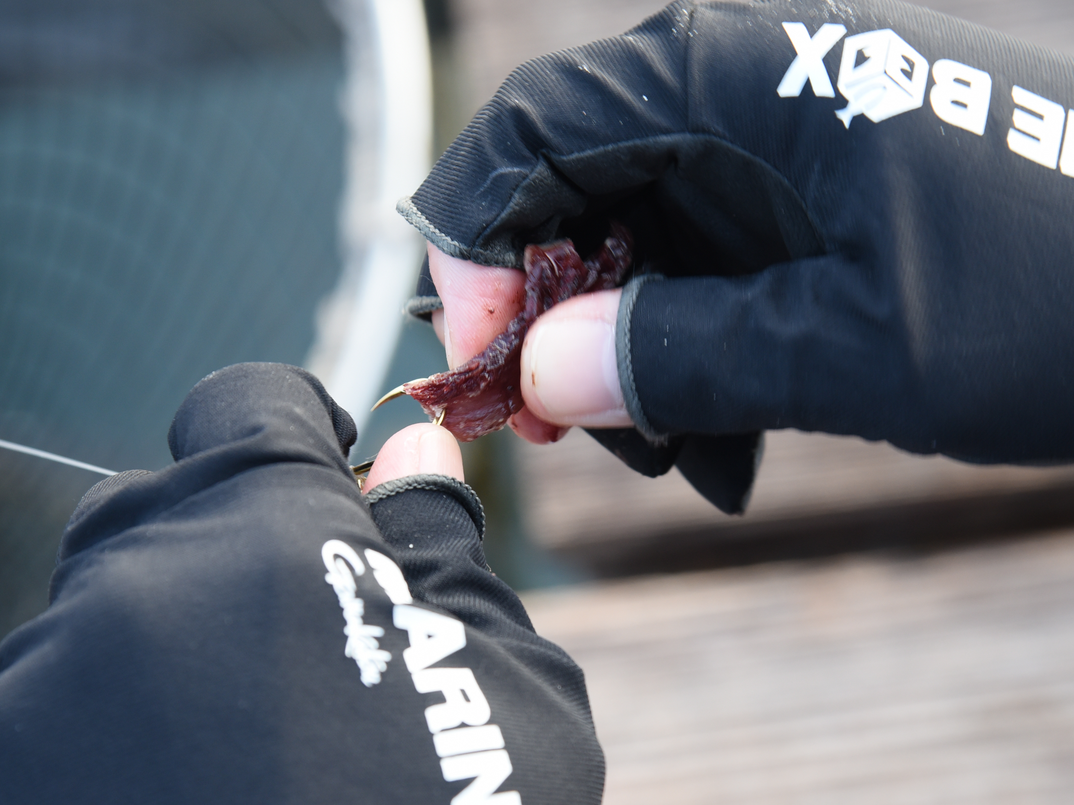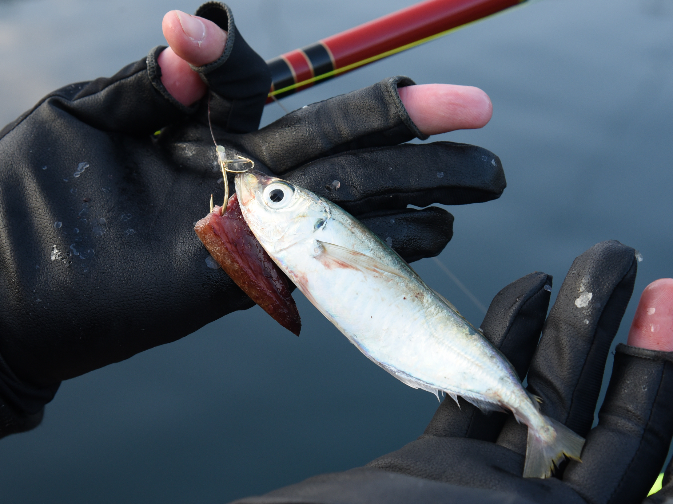 鈎には切り身やハラワタ等をセット。