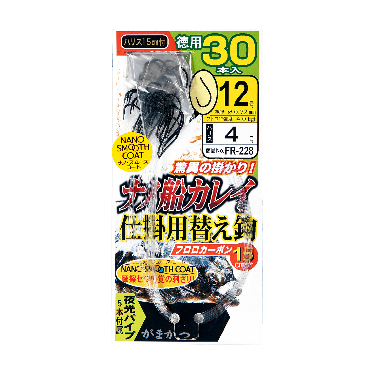 ナノスムースコートを施した鈎「ナノ船カレイ」を使用しており貫通力抜群!「ナノ船カレイ仕掛」の替え鈎としてご使用ください。ハリス15cm付。