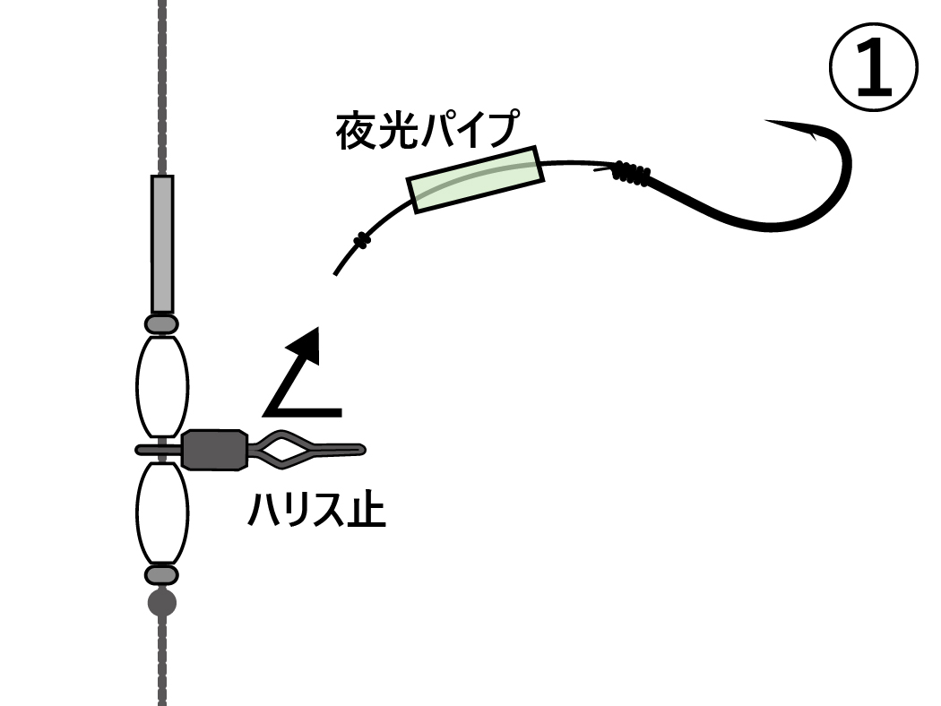 3.ハリス止に夜光パイプをかぶせて完成!
