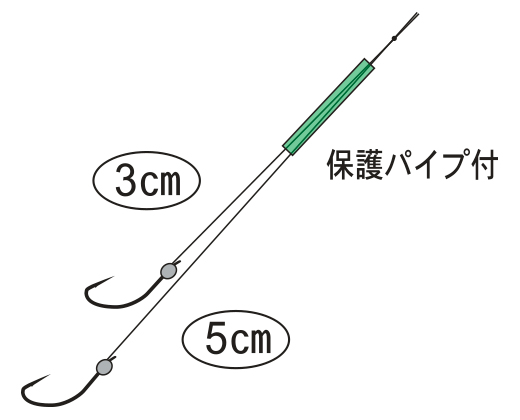 吸い込みがいい下鈎をダブルで装着できる欲ばりな「ダブル下鈎」。カラミ止めパイプ付でハリスがまっすぐ下向きになり、しっかりと底にはわせ、アタリを出すことができます。