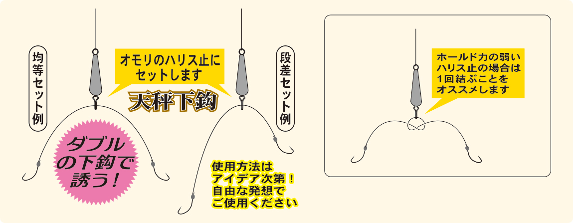 確実に底にはわすことができるため、喰いが渋くベタ底の状況に効果を発揮。使い方は、あなたのアイデア次第。