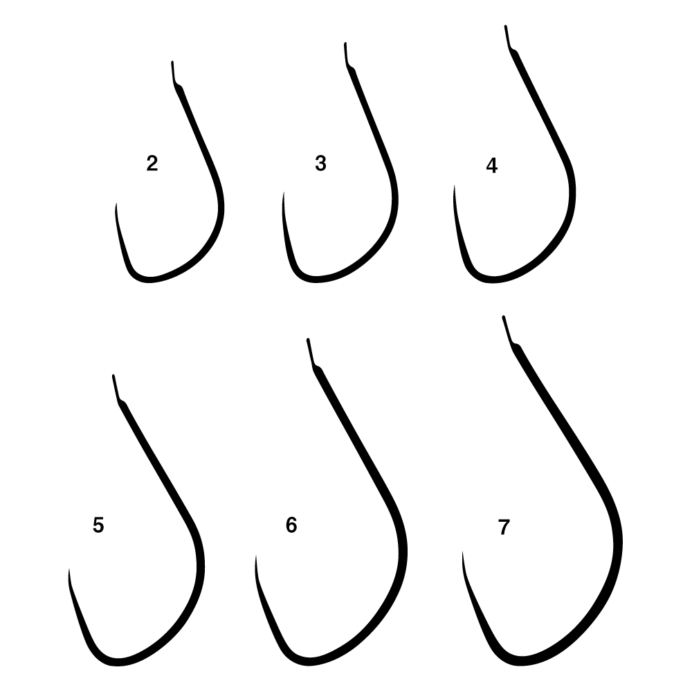 ダンゴに一体化し、かつ餌を切りやすいよう「平打ち」にした新設計鈎です。餌持ちがよく、さらに吸い込みがよく外れにくい「半ネムリ」形状。