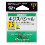 従来のアマゴ鈎を基本に鈎先をストレートに設計した「半スレ」鈎です。この鋭い鈎先が硬い顎をも、軽く貫きます。ミミズやクロカワ虫など長物の餌を刺しやすく、叩き角度をつけることで餌がズレにくい形状に仕上げました。