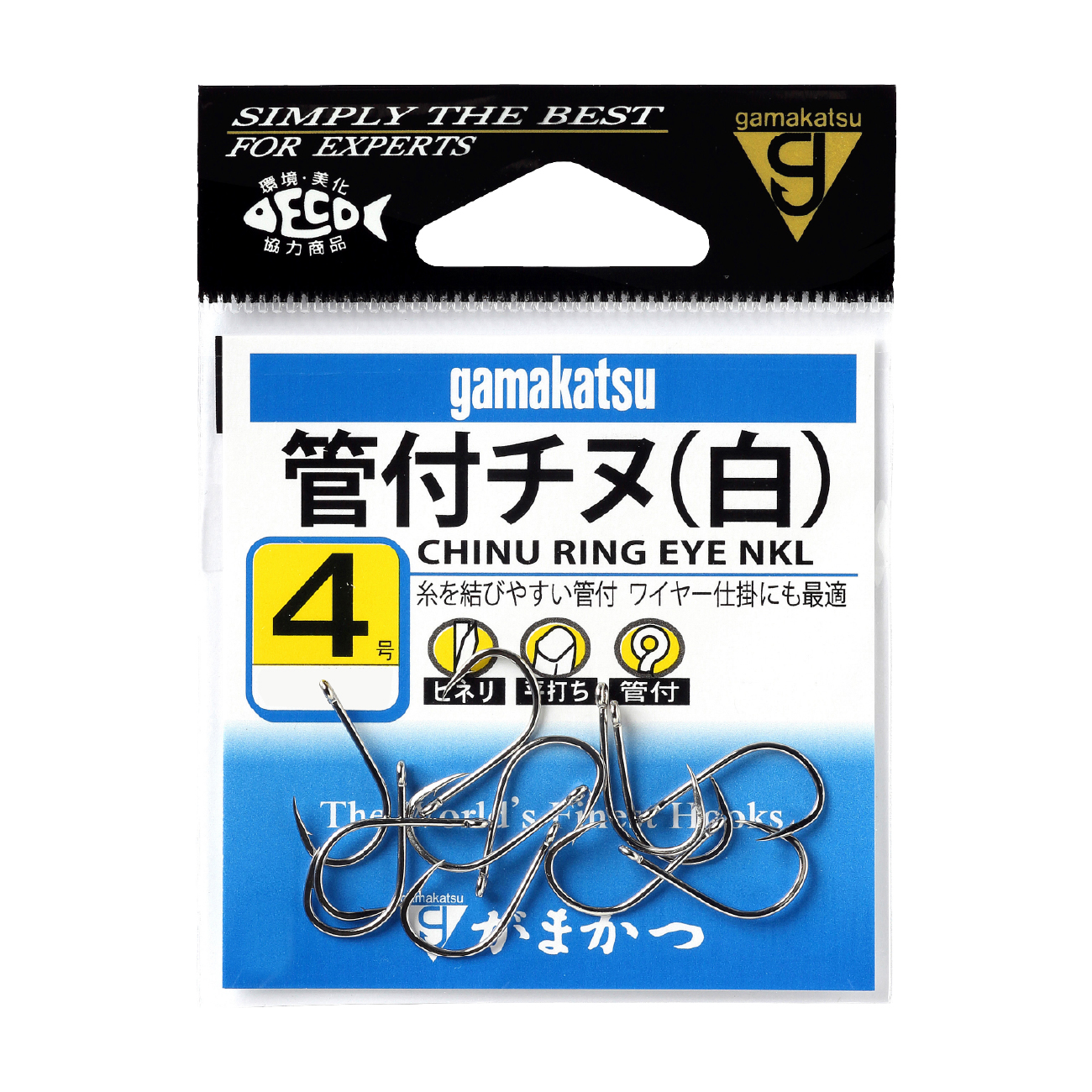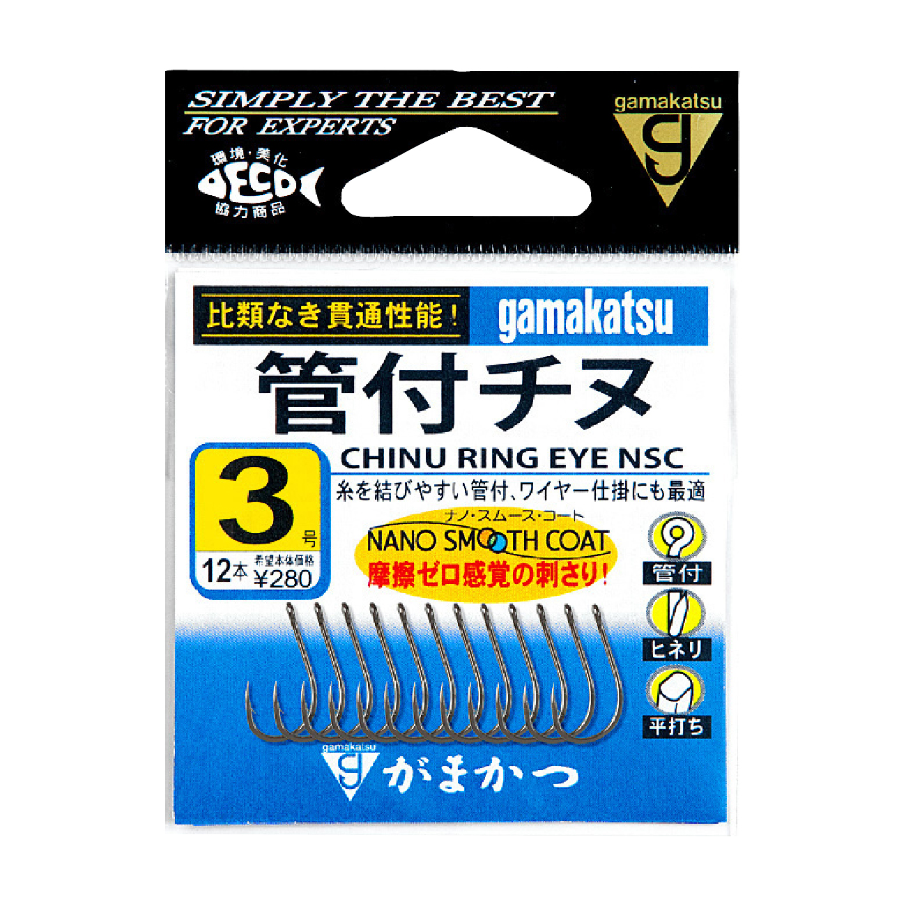 オールラウンドタイプのチヌ鈎の形状で、ビギナーでもハリスを結びやすい「管付」。タチウオ狙いのワイヤー仕掛にも好適です。ナノスムースコートはスムーズな餌付けと驚異の貫通力をご体験ください。