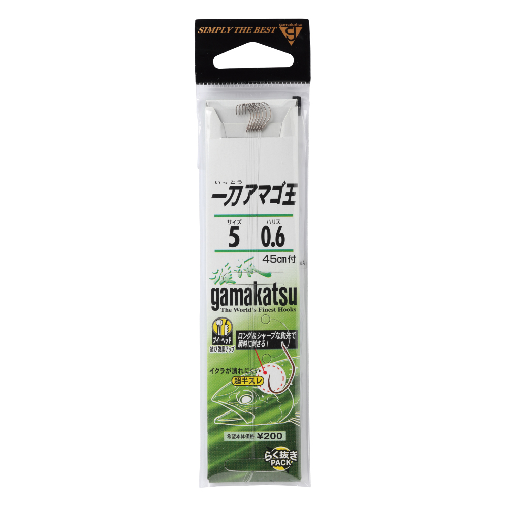 軽く合わせるだけで鋭く魚の口を捉える、貫通性能重視の鈎先「スパットテーパー」設計です。バレにくい「半スレ」だから安心してやりとりできます。形状は「やや短軸の狐型」でバランスも秀逸。イクラも潰れにくくキンパクなどの虫餌もきれいに収まるフトコロ形状です。「ブイヘッド」採用。