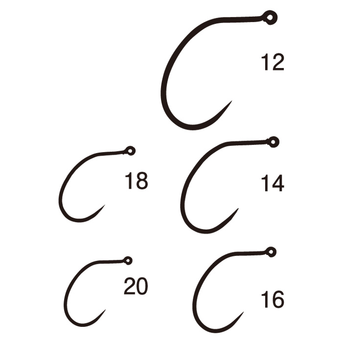 近年人気の管理釣り場も視野に入れてます。パターンとしては水中部分に沈むボディー部分を長くとったドライフライやフローティングニンフ、ピューパなど。当社独自のフォルムを持つ鈎であり、実釣性の極めて高いオリジナリティーの高いフライパターンを造ることが可能となりました。
