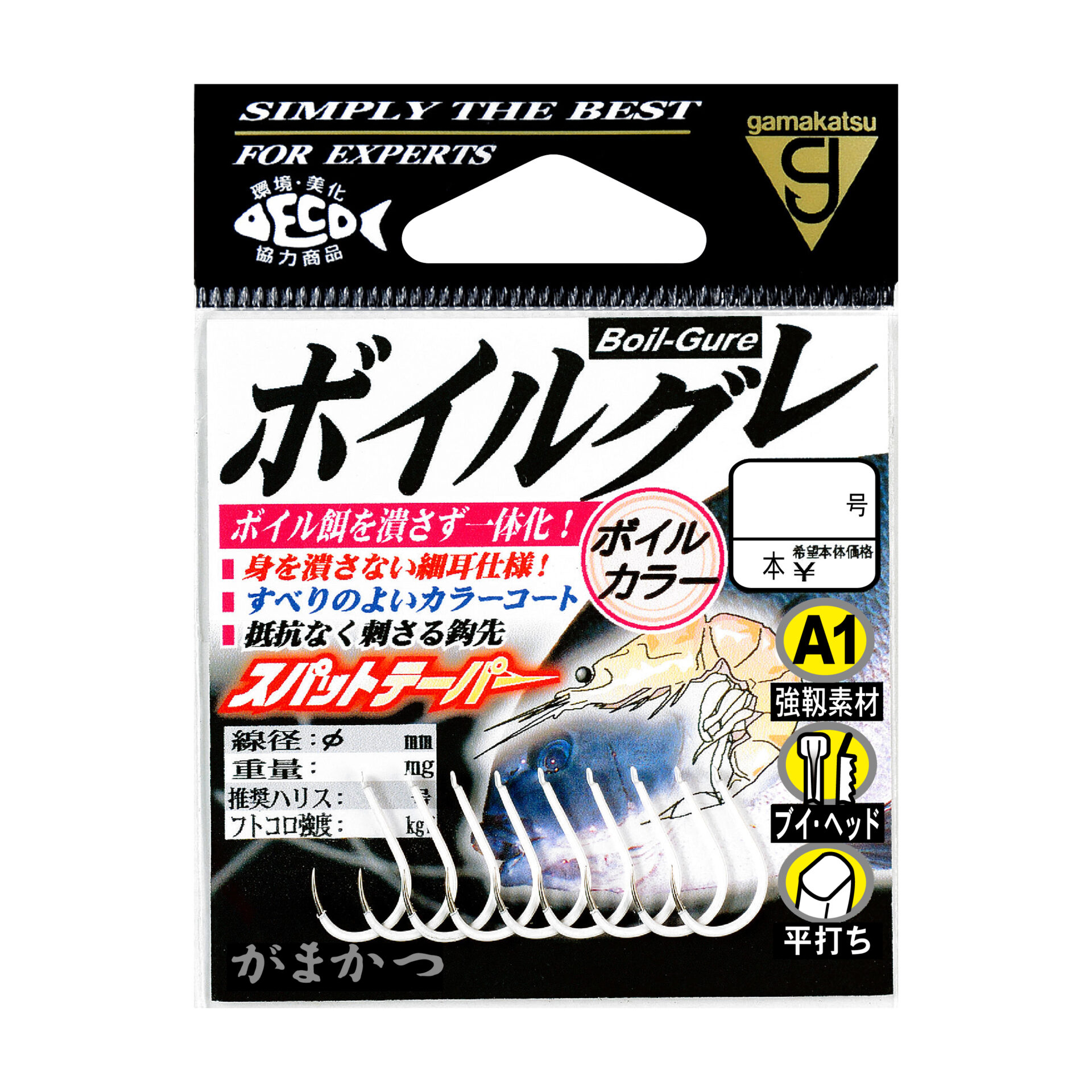 「トップレスコート」と「スパットテーパー」により、崩れやすいボイルでも非常にスムーズに刺せます。また、ほどよい太軸でボイルを潰す心配がありません。掛かりの良さ、鈎先の鋭さは「A1」ならでは。ボイル餌によく似た淡いピンクカラーでグレに違和感を与えません。