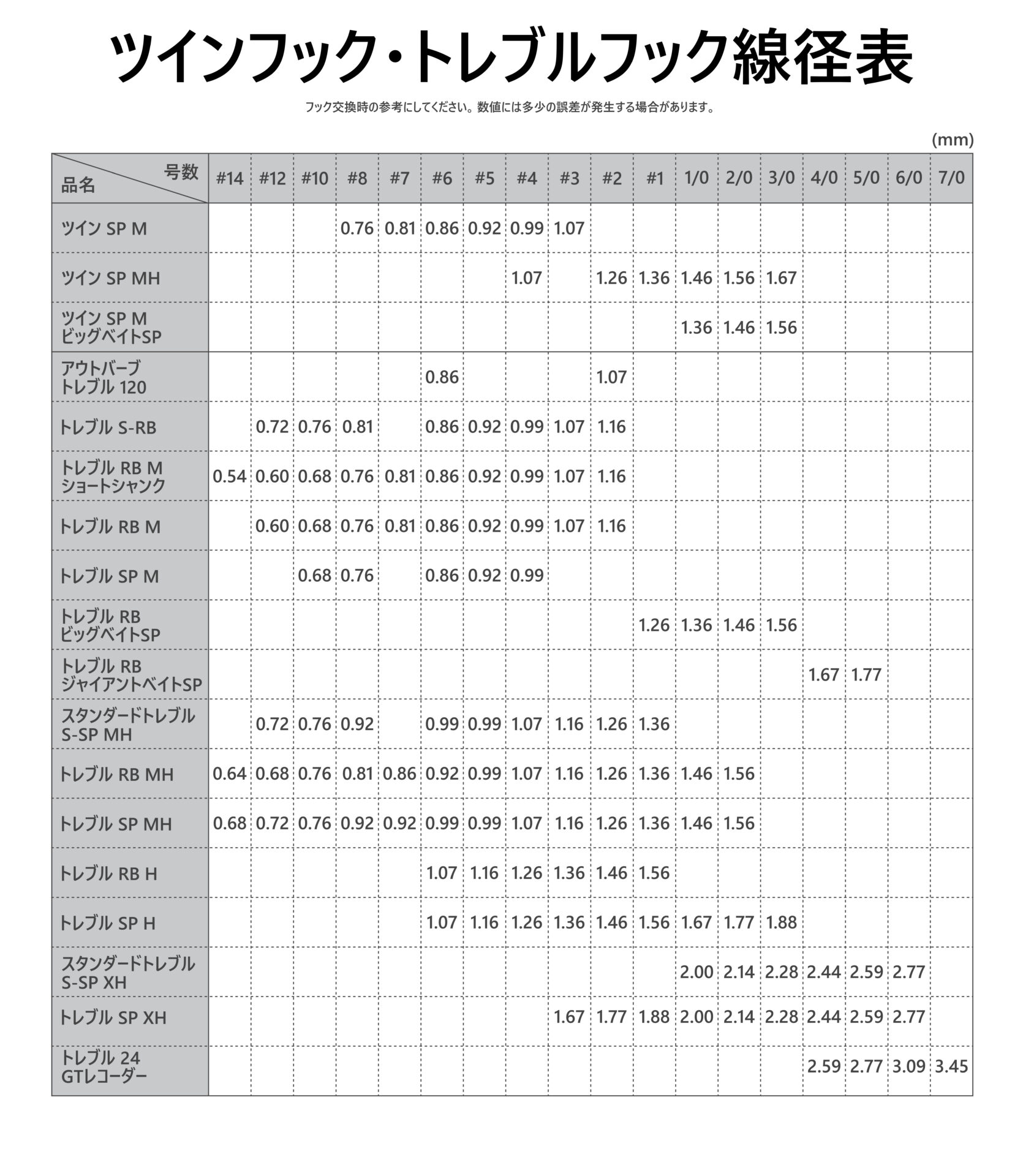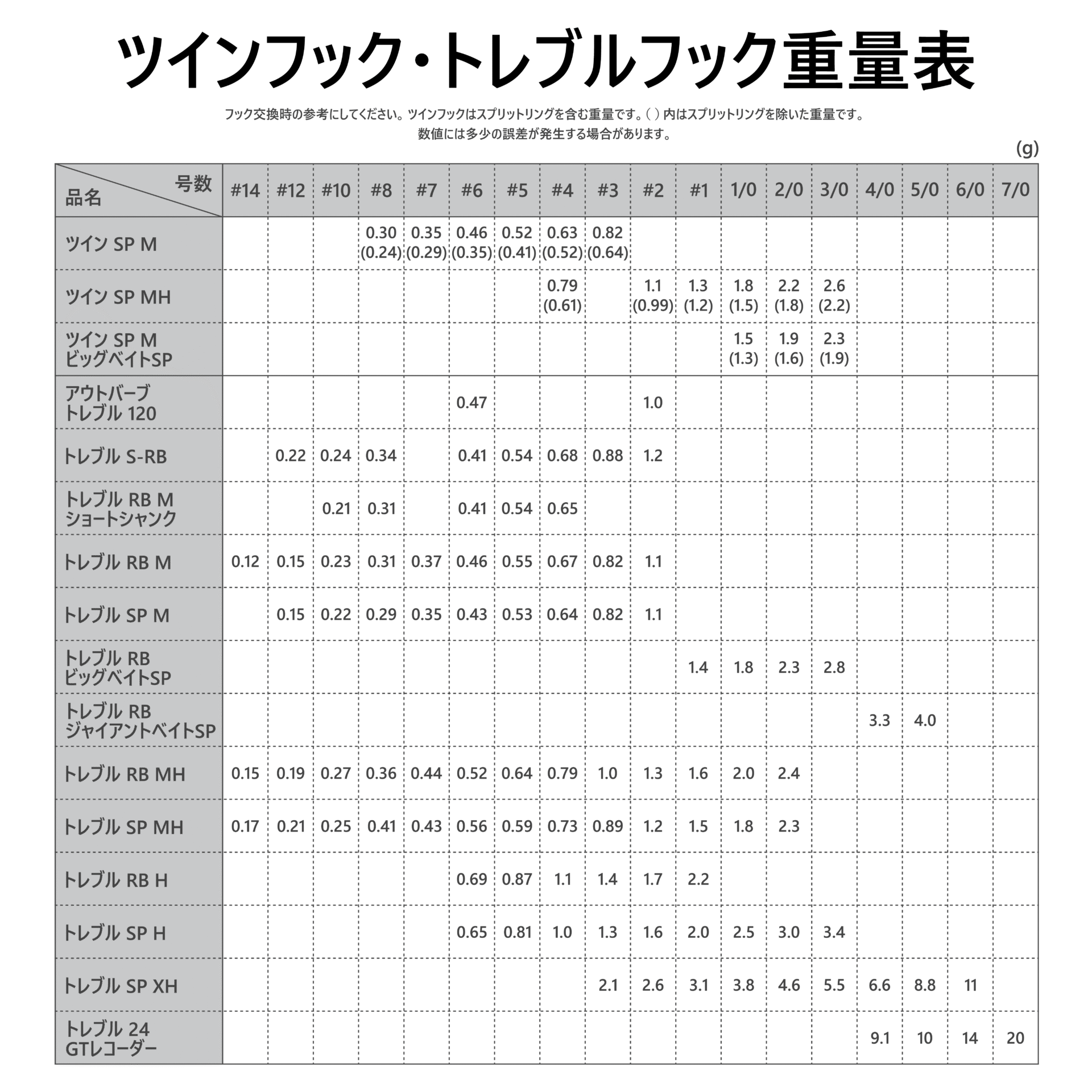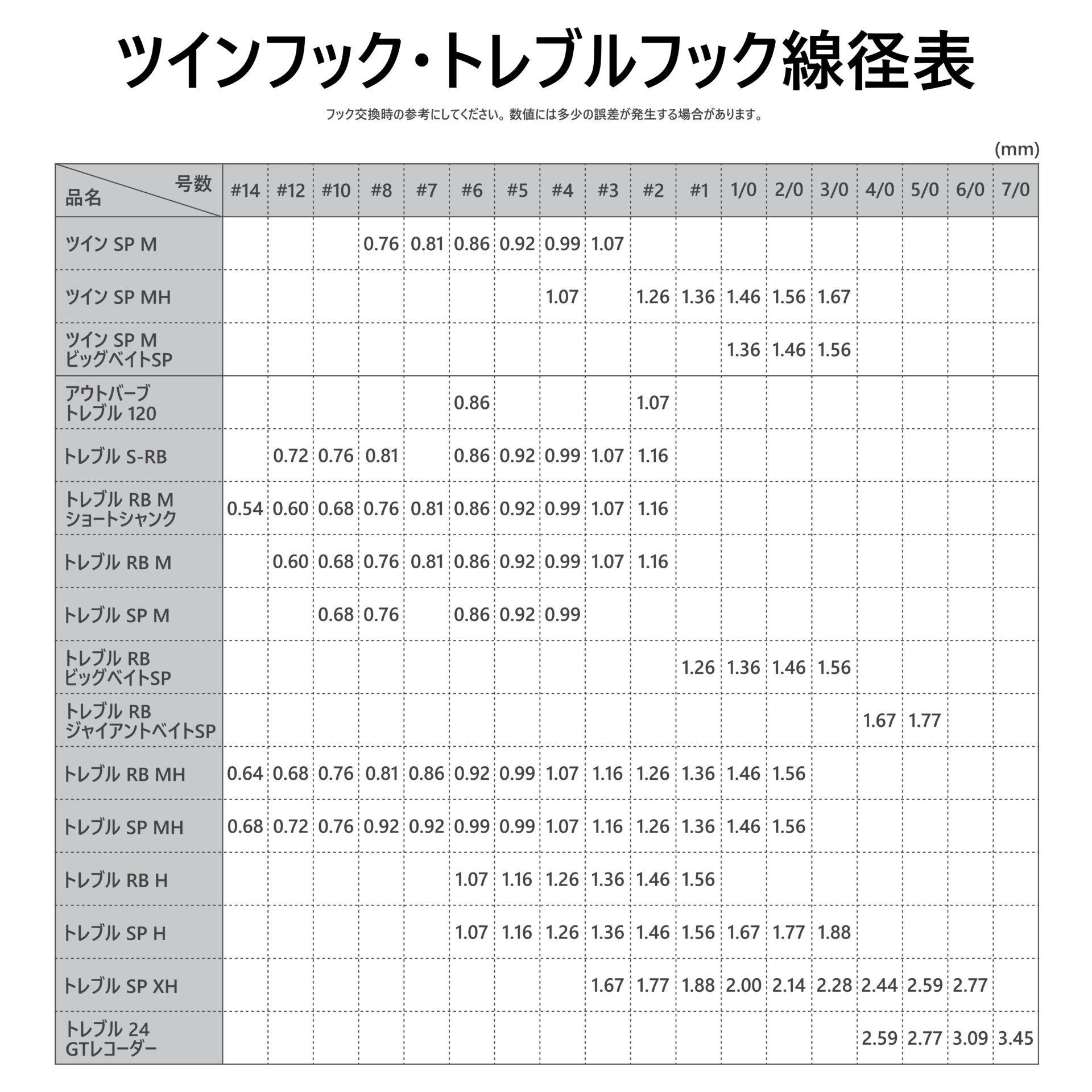 | 品名コード | フック | 線径(mm) | 重量(g) | 入数 | 希望本体価格(円) | JANコード |