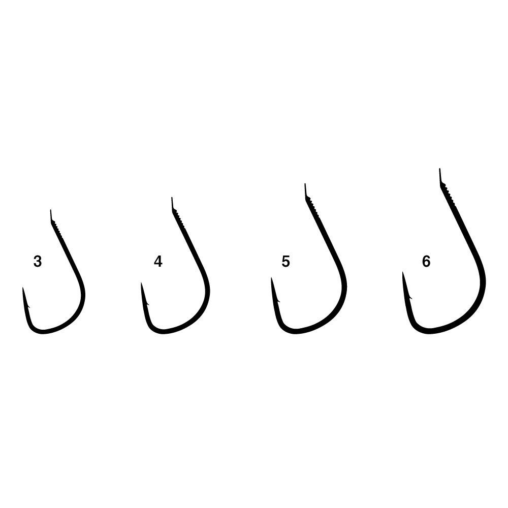 「A1」素材で細軸軽量、かつフトコロ強度が向上。チモトには「ブイヘッド」加工。半スレで貫通力も高く鈎立ちも抜群です。警戒心の強いヤマメに違和感なく食わせるために3、4、5、6号の小鈎4サイズをラインナップ。