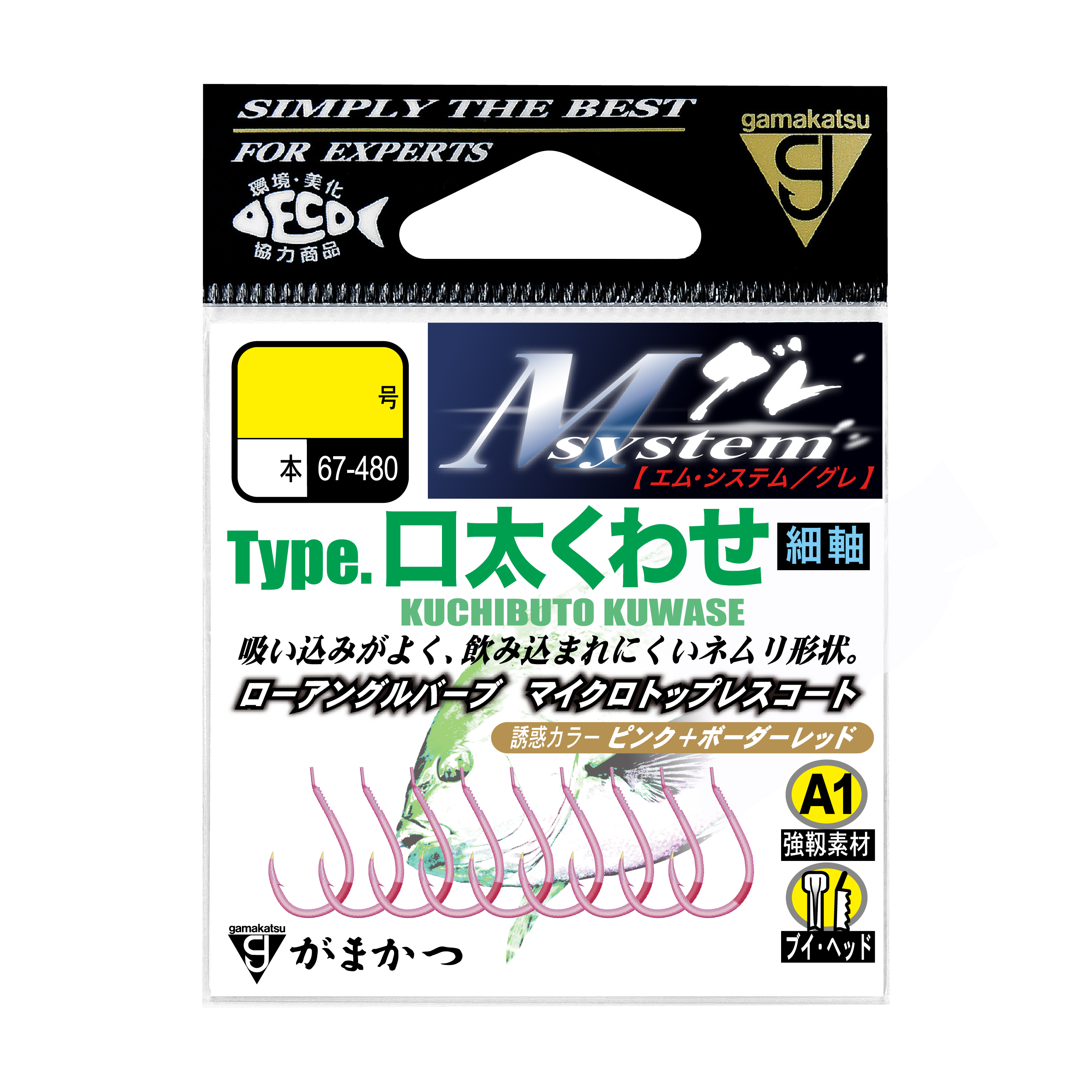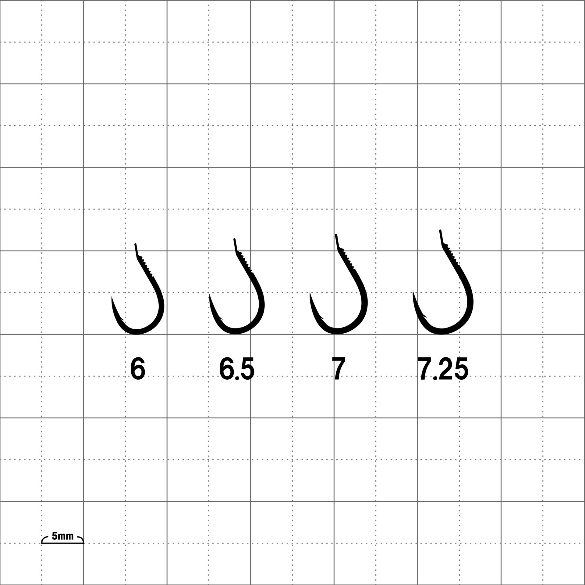 1.75号クラスまでの竿で口太グレを狙うのに最適な強度とサイズ設定の「口太専用鈎」。ストレートに近い鈎先は、魚のコンタクトを一瞬で捉える速攻アワセ専用設計。違和感を感じると即座に鈎を吐き出すスレた大物や、トーナメンターのアワセの素速いスタイルに。