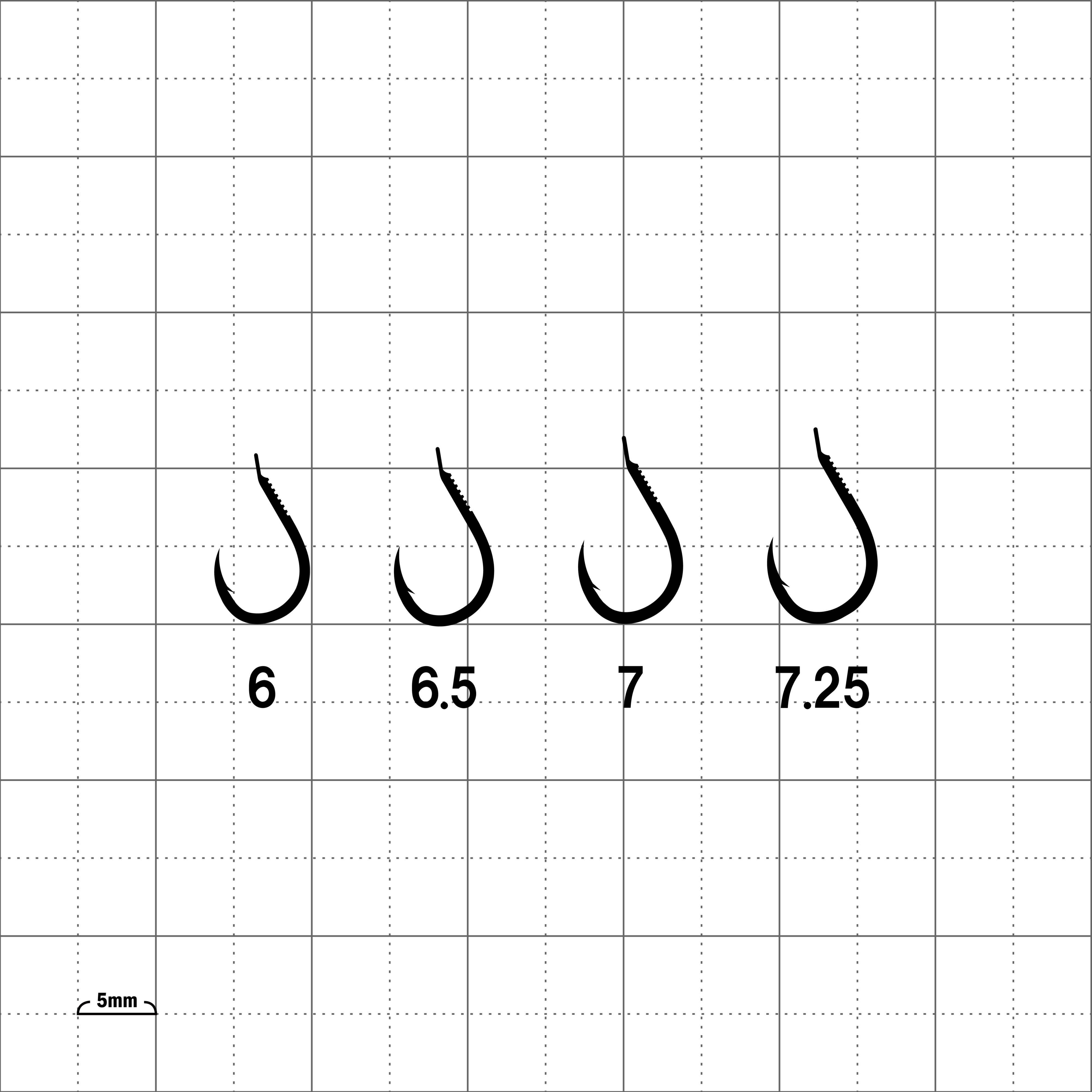 「Type口太速攻」同様、1.75号クラスまでの竿で口太グレを狙うのに適しています。鈎先を強めにネムらせ、コンパクトで吸い込みのよい形状に仕上げました。飲み込まれにくく、鋭い進入角度でスムーズなフッキングが可能です。