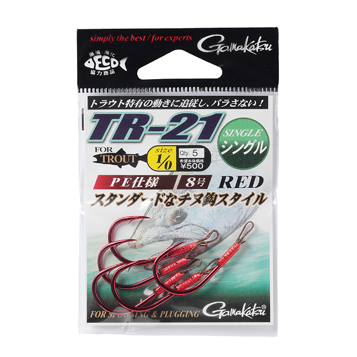 ●トラウト全般に実績のある「チヌ型」のフックに「レッドカラー」を施しました。