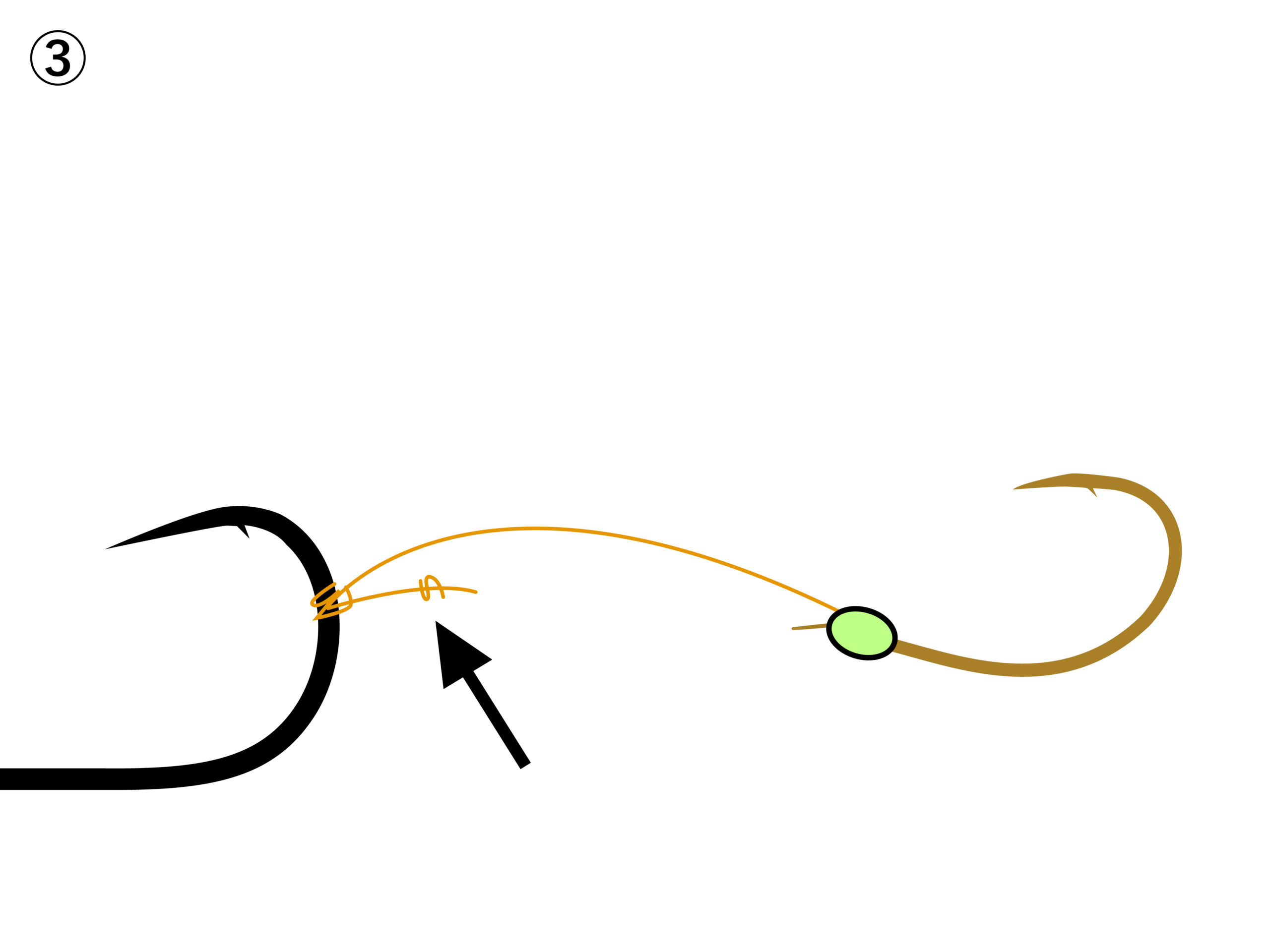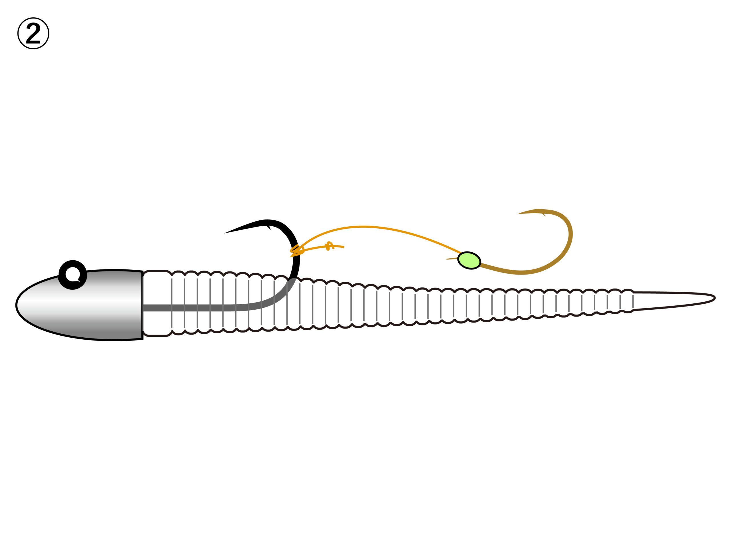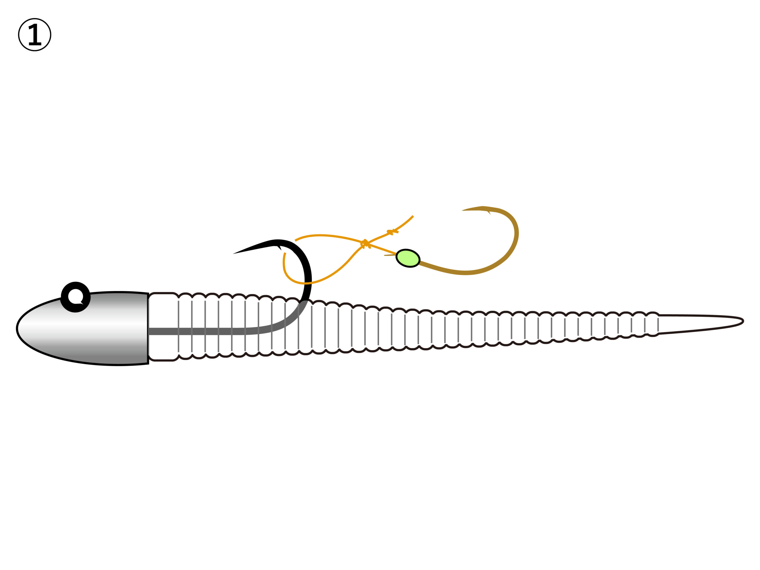 1.鬼爪のライン(輪)をジグヘッドのフックに掛けます。