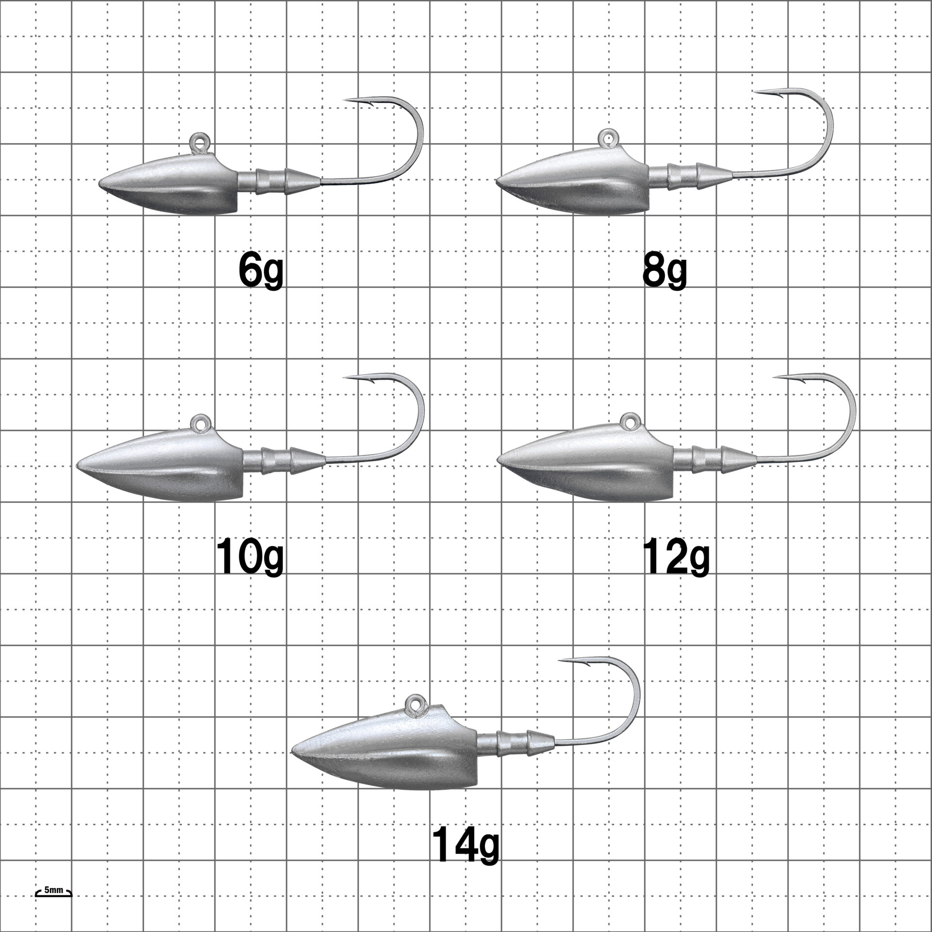 リーリングするとボトムへ向かおうとするヘッド形状で、港湾部や低水温時期においてボトム付近での優れたレンジキープ能力を発揮します。着底時、常時フックが上を向く安定したバランス設計になっています。レンジキープ能力に優れるためディープエリアにおいてもより軽いウエイトを使用できます。