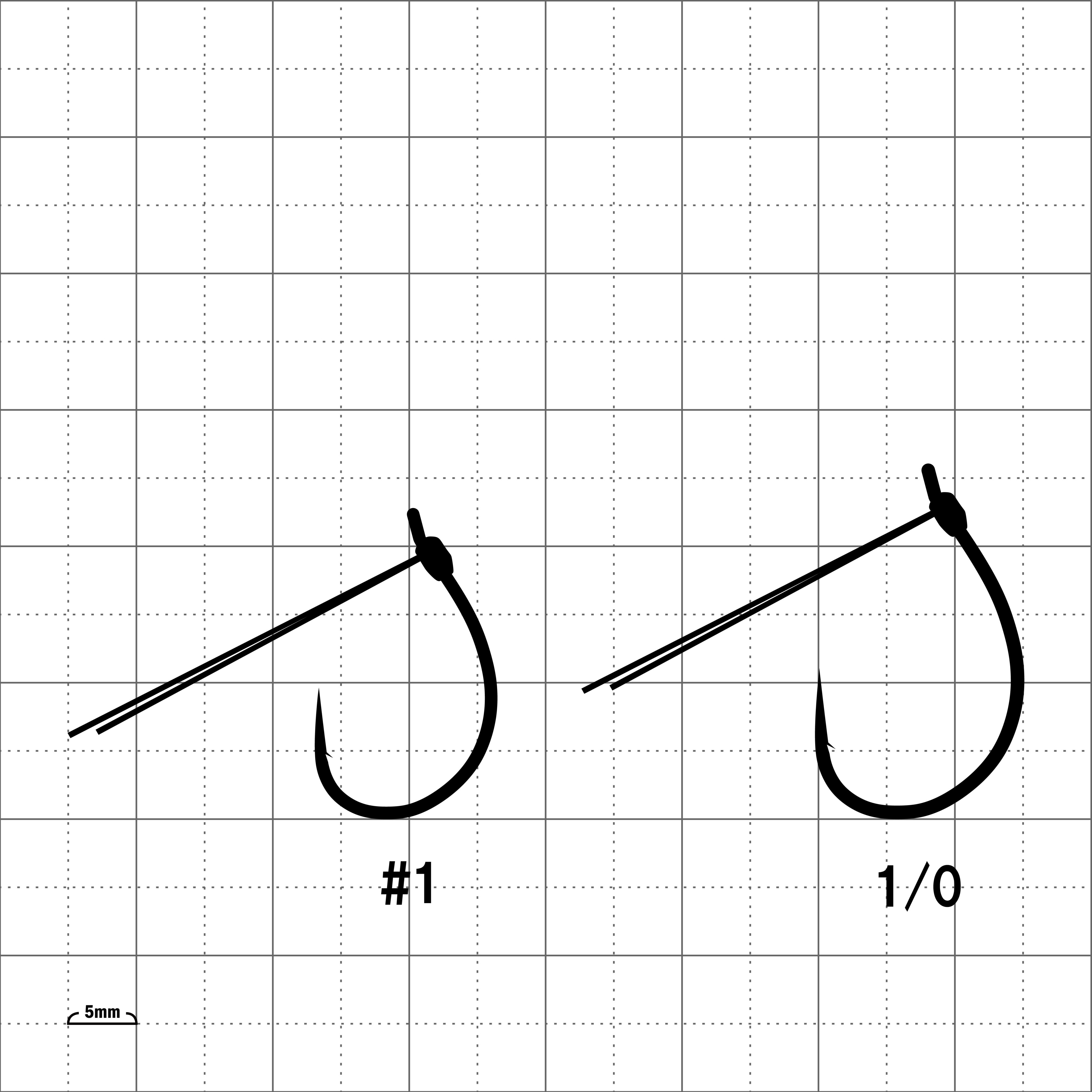 琵琶湖での12インチクラスのロングストレートワームやスピニングタックルでの4~7インチのストレートワームのネコリグなど、ターゲットのサイズや狙うシチュエーションを考慮した場合に、太軸設定は抜群の強度と能力を発揮します。また、サイズバリエーションも豊富であらゆるワームにマッチします。