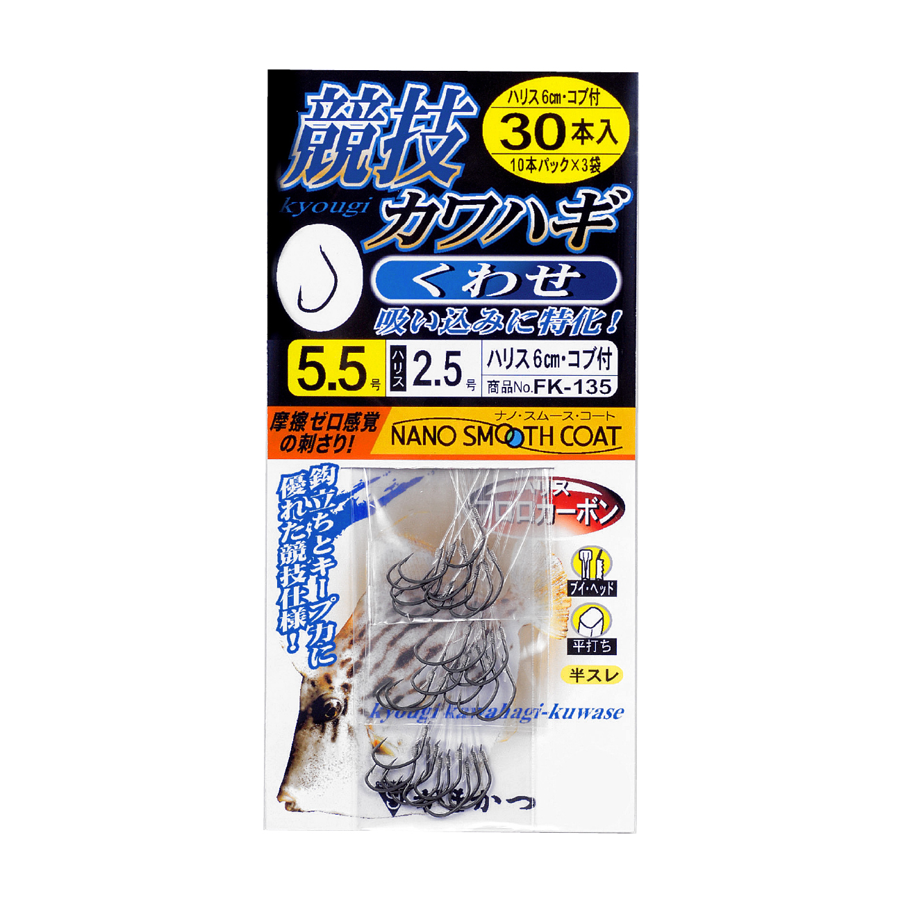 タルマセやはわせ釣りなどの“横の釣り”は仕掛のテンションを抜くためアタリが捕らえにくく、口内にどれだけ長く鈎を入れておけるかがポイントになってきます。この鈎はカワハギが吸い込みやすく、吐き出そうとしたときに鈎先が口内に立ち、吐き出されにくいストレートポイント。“聞きアワセたら掛かっていた”というオートマチックな鈎になっています。「ナノスムースコート」で貫通力も抜群。鈎にエサを刺した時に違いを感じることでしょう。