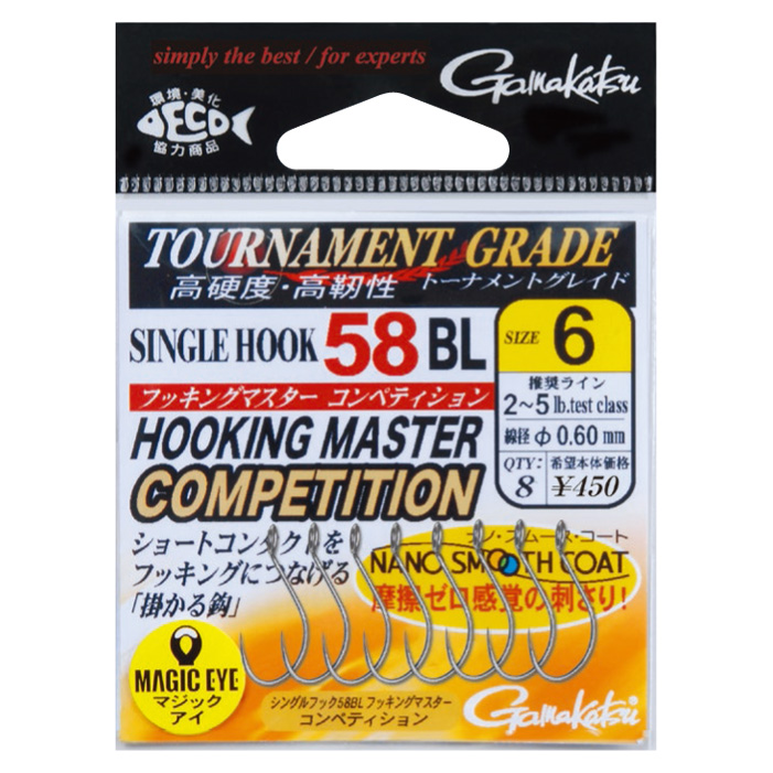ショートコンタクトをフッキングに持ち込むフックポイントの角度とテーパー設計。フッキングを妨げない緩やかな角度のついたアップアイ。「ナローリバースベンド※」を装着し、フックポイントを完全に独立・露出。滑らかなベンディングカーブによりフトコロ深くフッキングします。魚へのダメージを軽減するため、魚体に触れずにスムーズにリリースすることを考慮したフォルムも特長。スプリットリングへの装着時間とリングの変形を最小限に抑える「マジックアイ」採用。