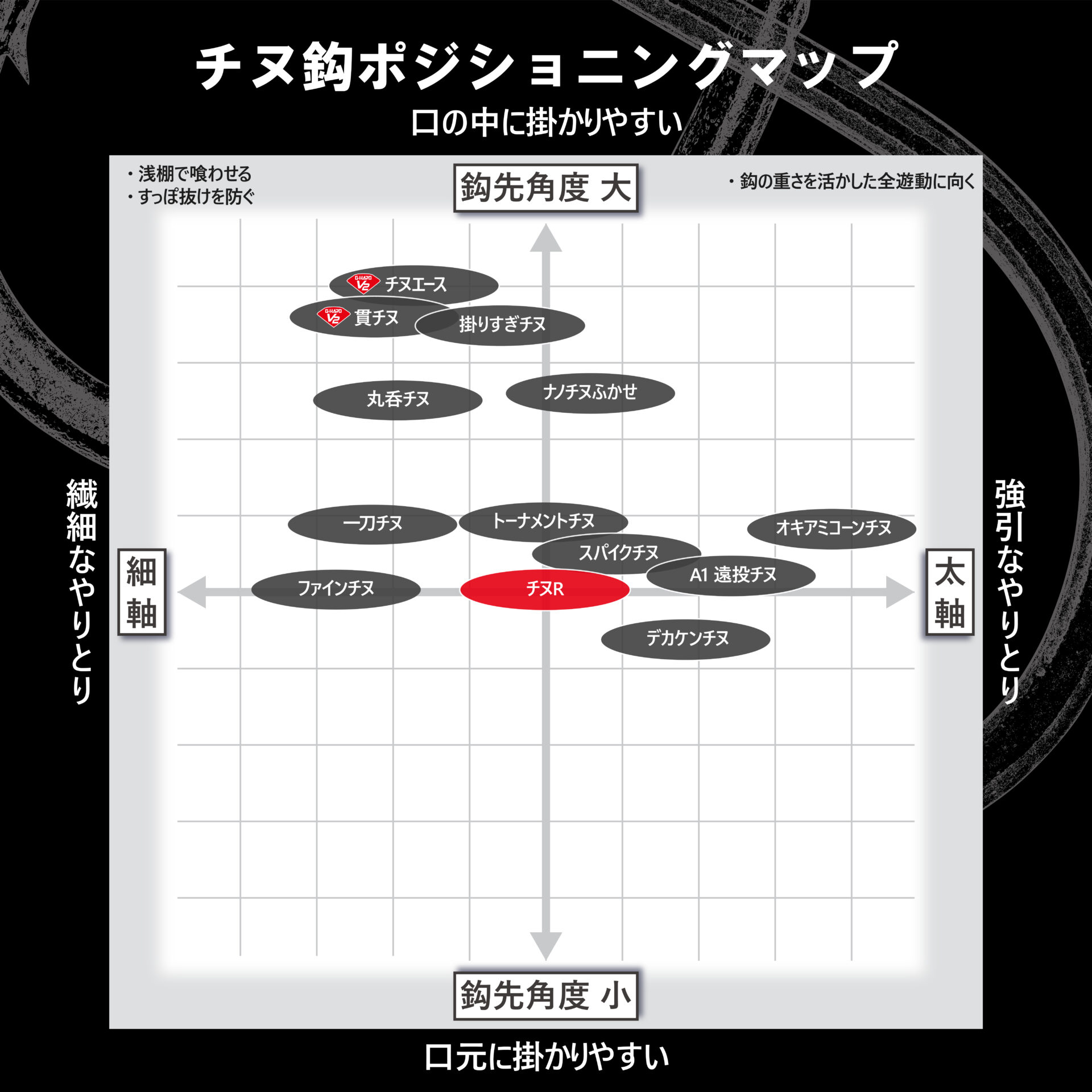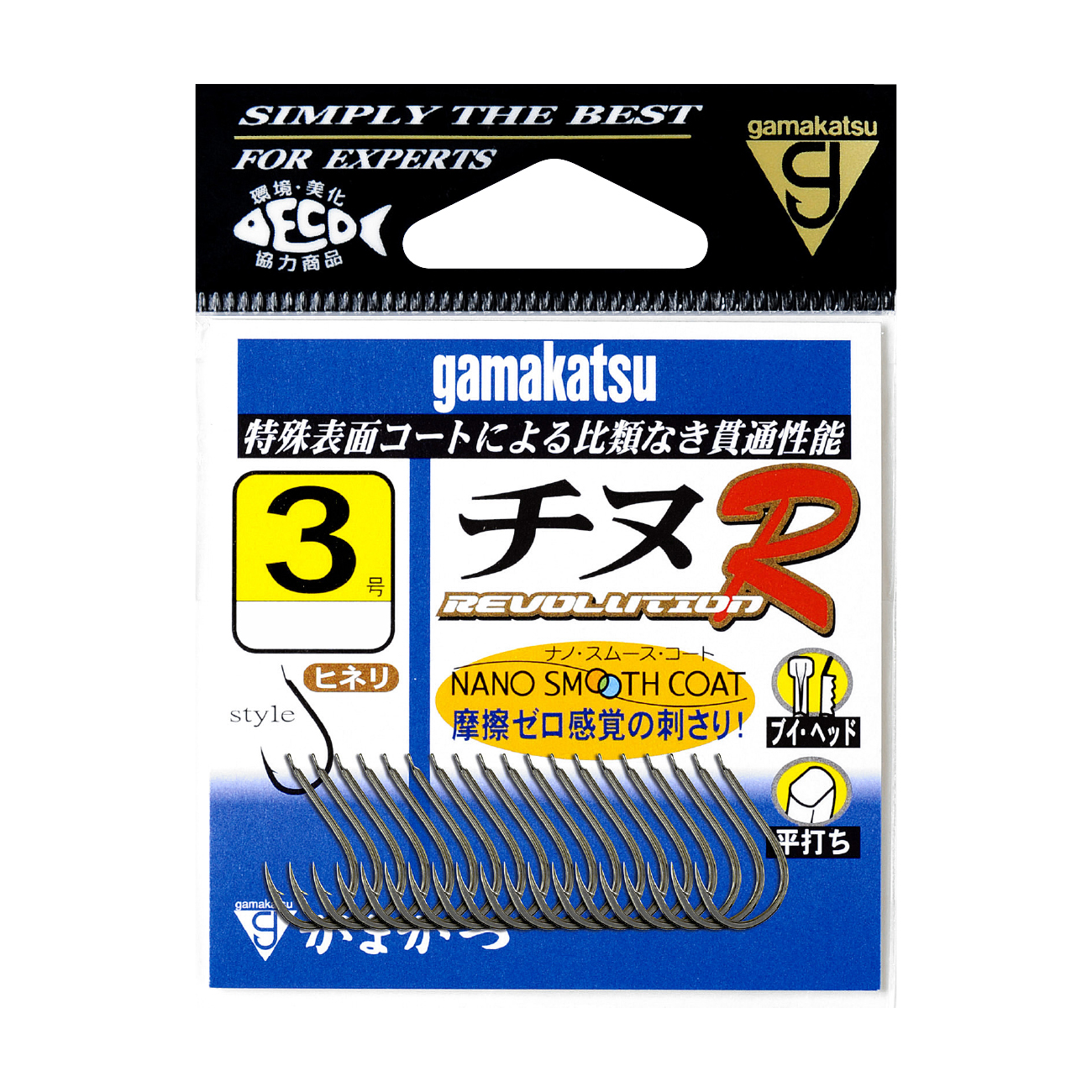 もはや伝統的といっても良い鈎「チヌ」にがまかつの革新的技術「ブイヘッド」と「ナノスムースコート」を施し、高い汎用性を持った高性能のチヌ鈎が誕生しました。チヌ鈎ながら対象魚はその限りではなく、あらゆる釣法に対応します。これまでの常識を覆す鈎掛かりの良さは、まさに革命(Revolution)です。