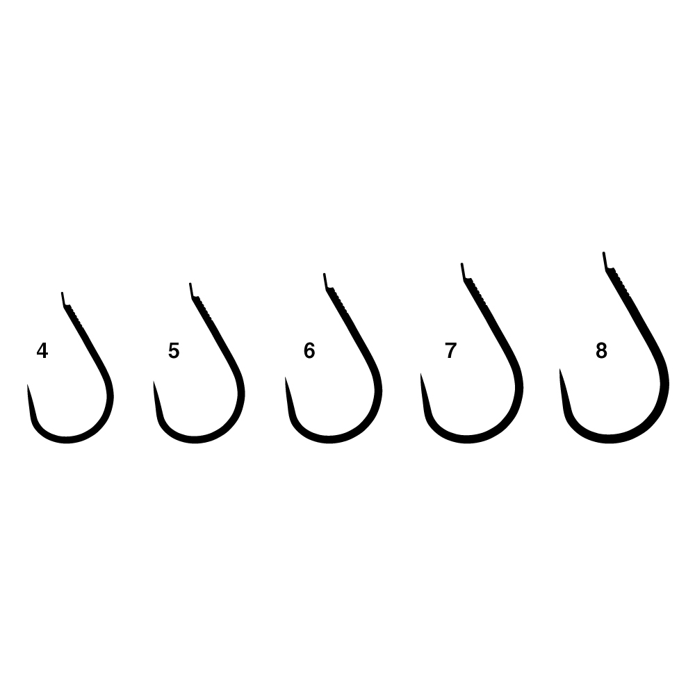 形状保持性能に優れる「T1」を使用した軽量設計と、実釣テストにより導き出されたフトコロ形状により、良好な吸い込み性能を実現。さらに鈎先にわずかな「ヒネリ」を加えることで、鈎の吐きだし時に絶妙な回転が生まれ口内に掛かる確率が飛躍的に向上します。腹打部に施された新加工「クロスギザ」は強度とエサ持ち性能を両立させ、あらゆるタッチのだんご餌に対応。表面には膜厚が薄く非常に鋭利な鈎先が特徴の新メッキ「パールホワイト」を採用し、手元での見やすさ、扱いやすさが向上します。だんご餌でカラツンが多発するような時期に、これまでになかった掛かりの良さを体感できます。
