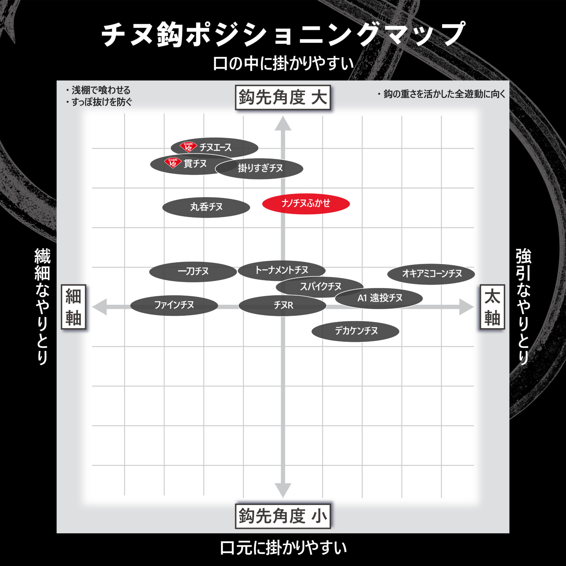 丸みを帯びた短軸コンパクトフォルムで警戒心の強い喰い渋りのチヌにも違和感無く食わせます。「ナノスムースコート」を施した「スパットテーパー」のストレート鈎先は硬いチヌの唇も難なく貫き、アタリを確実に釣果につなげます。エサ付けもスムーズにでき、遠投してもエサズレしません。
