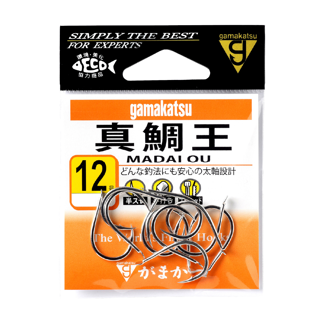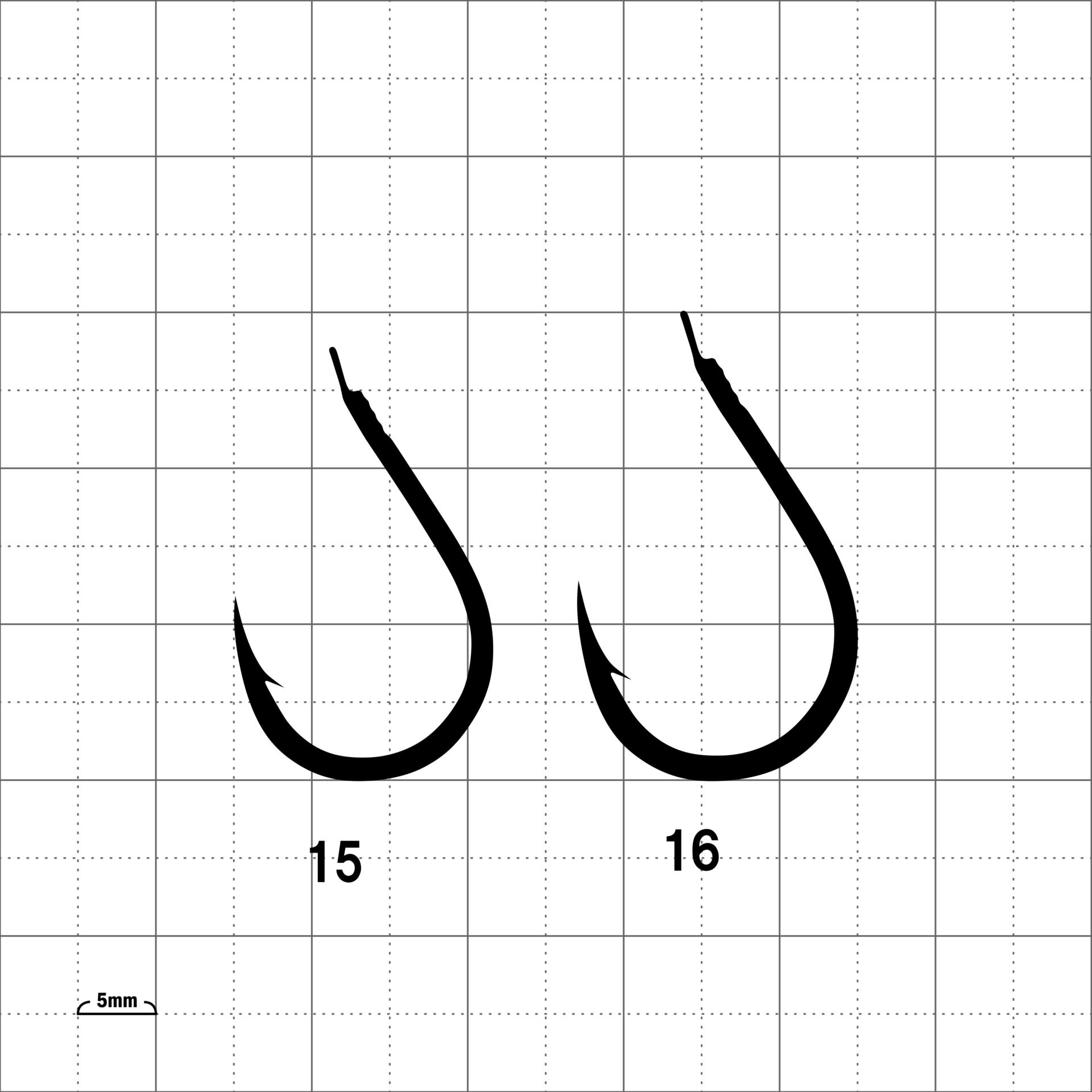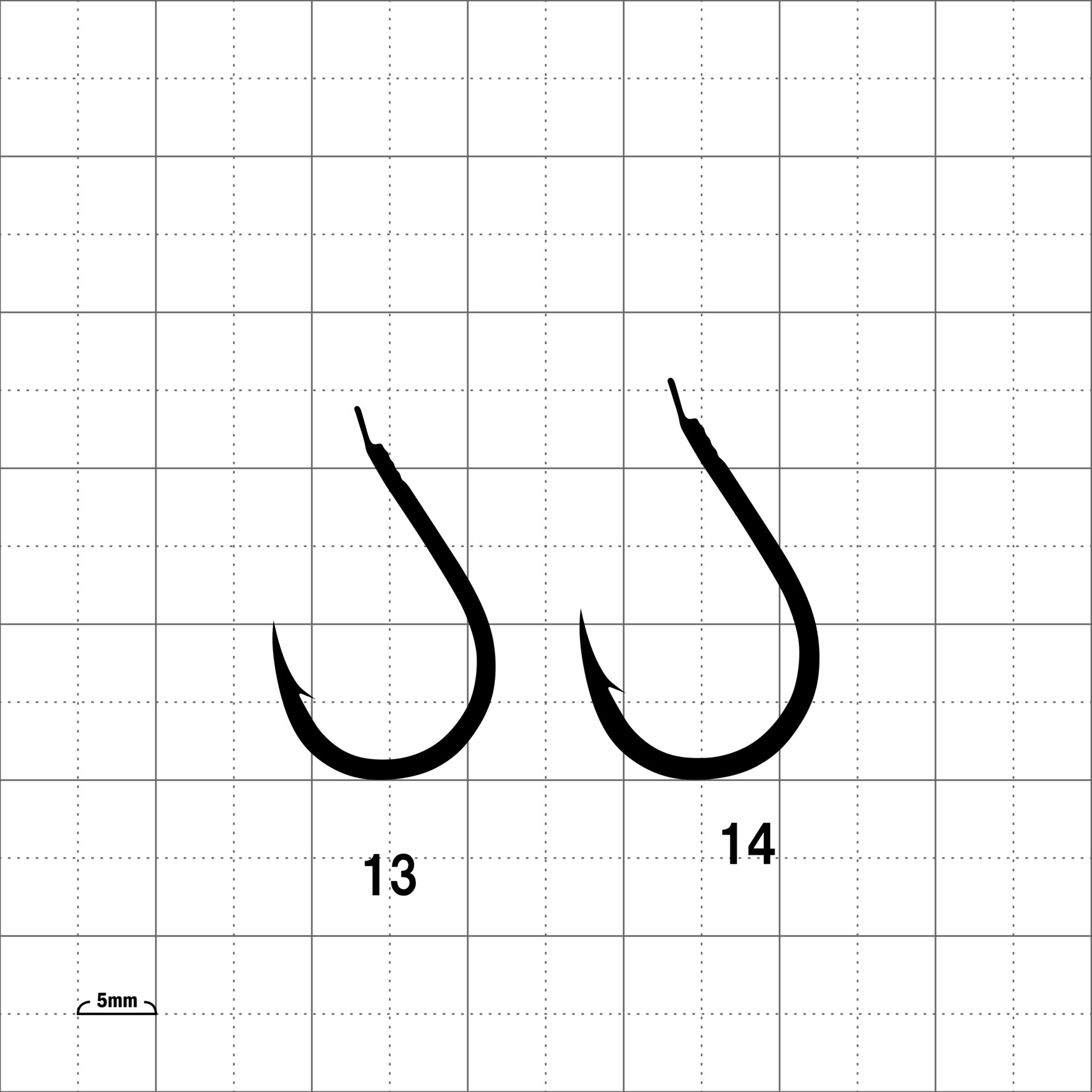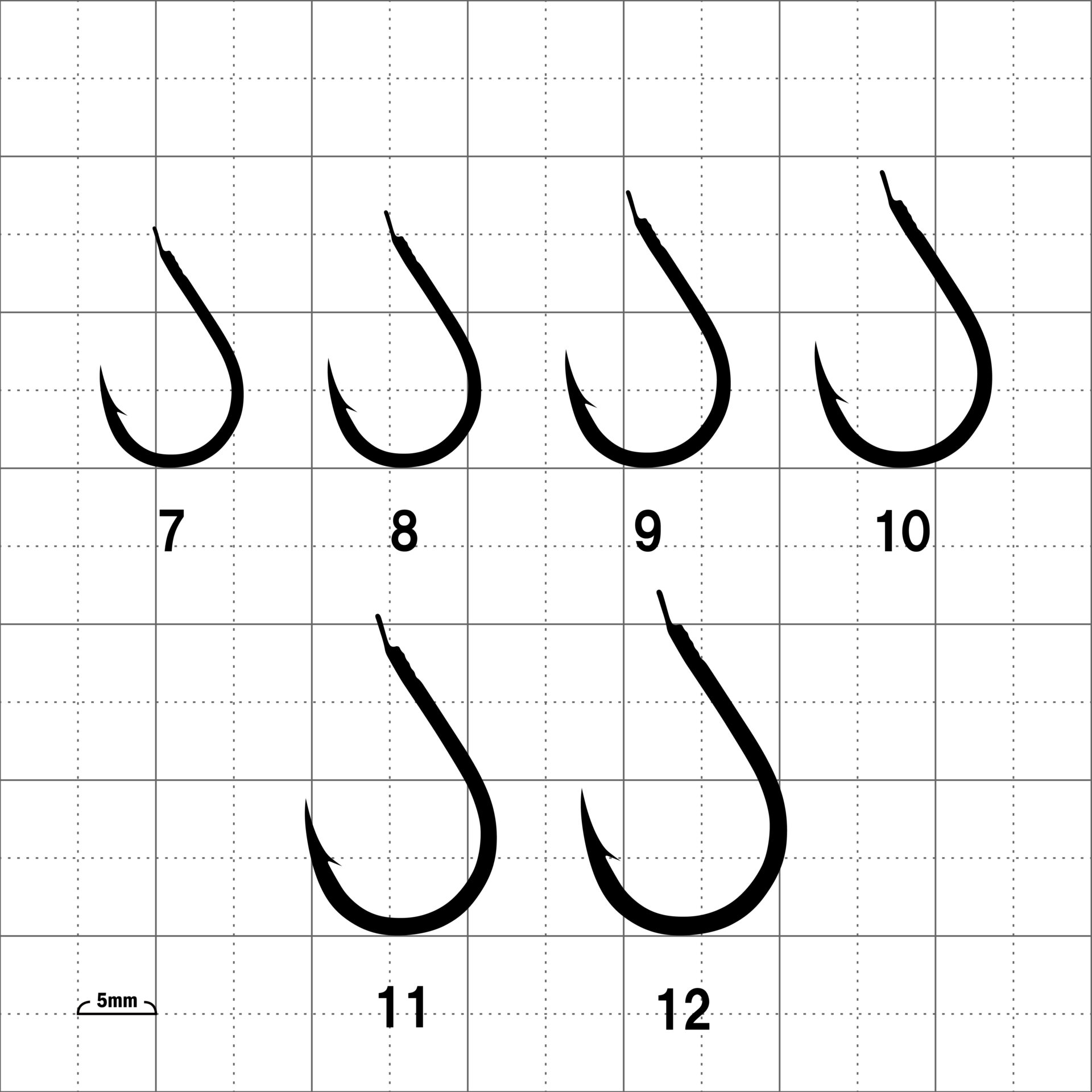 超大型真鯛にもビクともしない「軸太」設計。大きなフトコロが真鯛の口元をしっかり捕らえます。刺し餌の姿勢も抜群に良い「軸長」鈎形状。